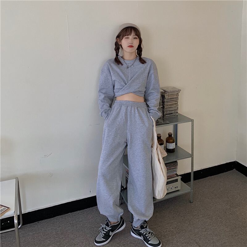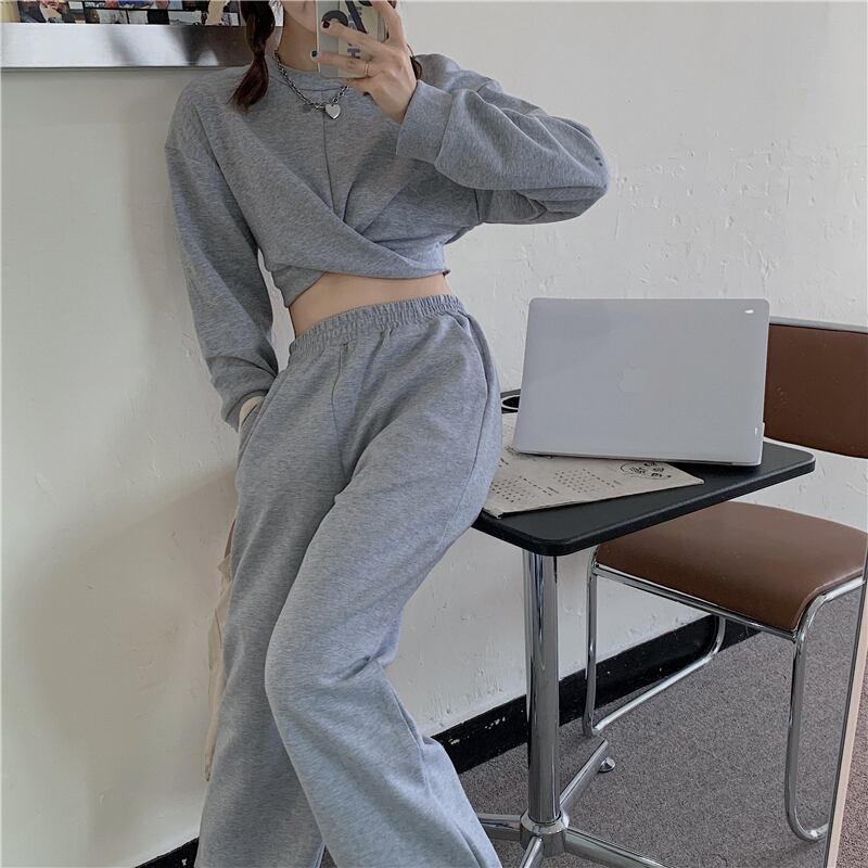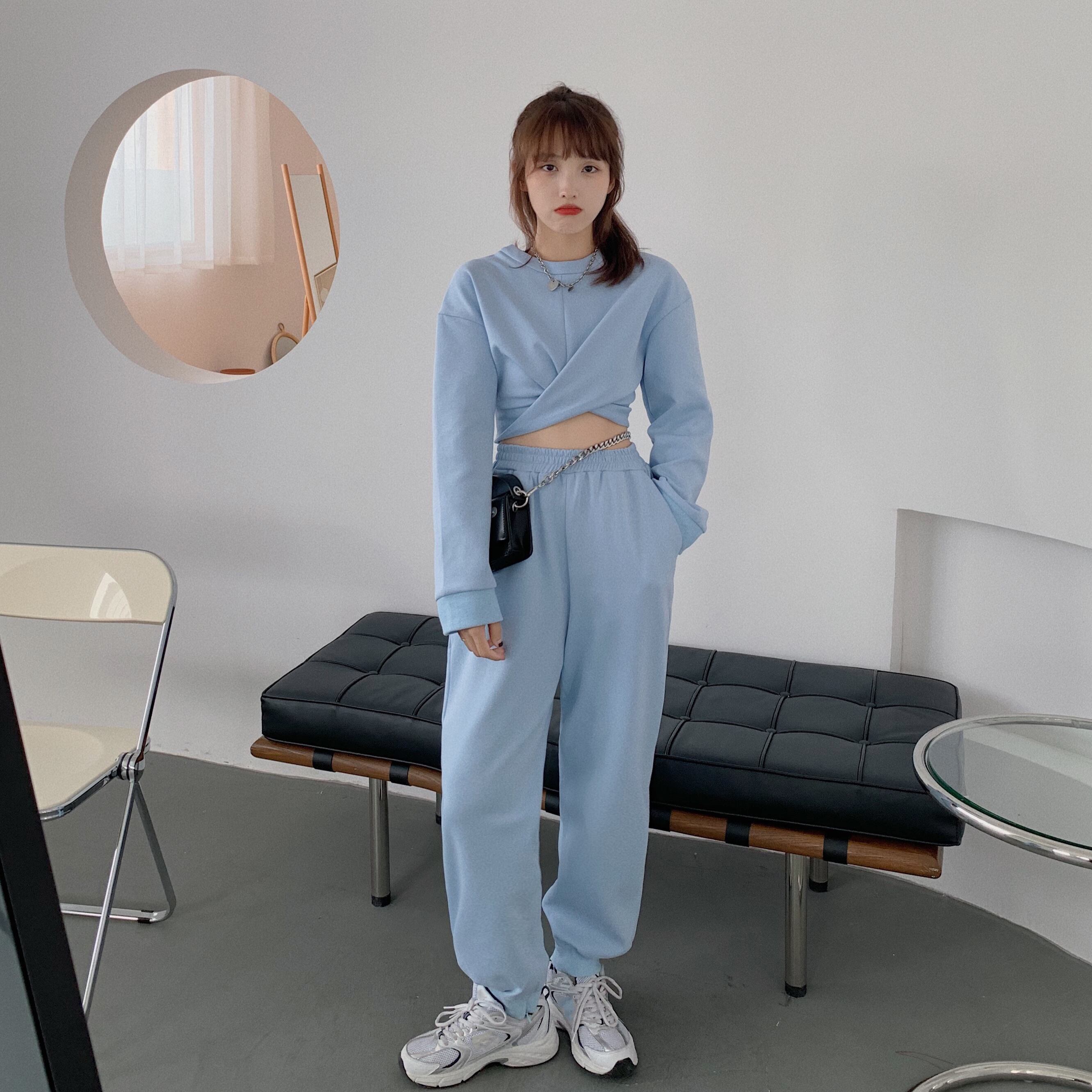 スーツの女性2020年秋新バージョンのクロスショートウエスト長袖セータールーズワイドレッグパンツ クレセントシティ4387073041