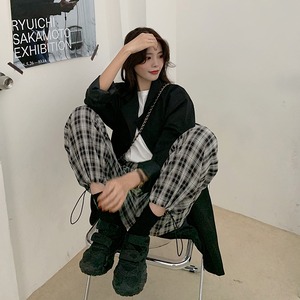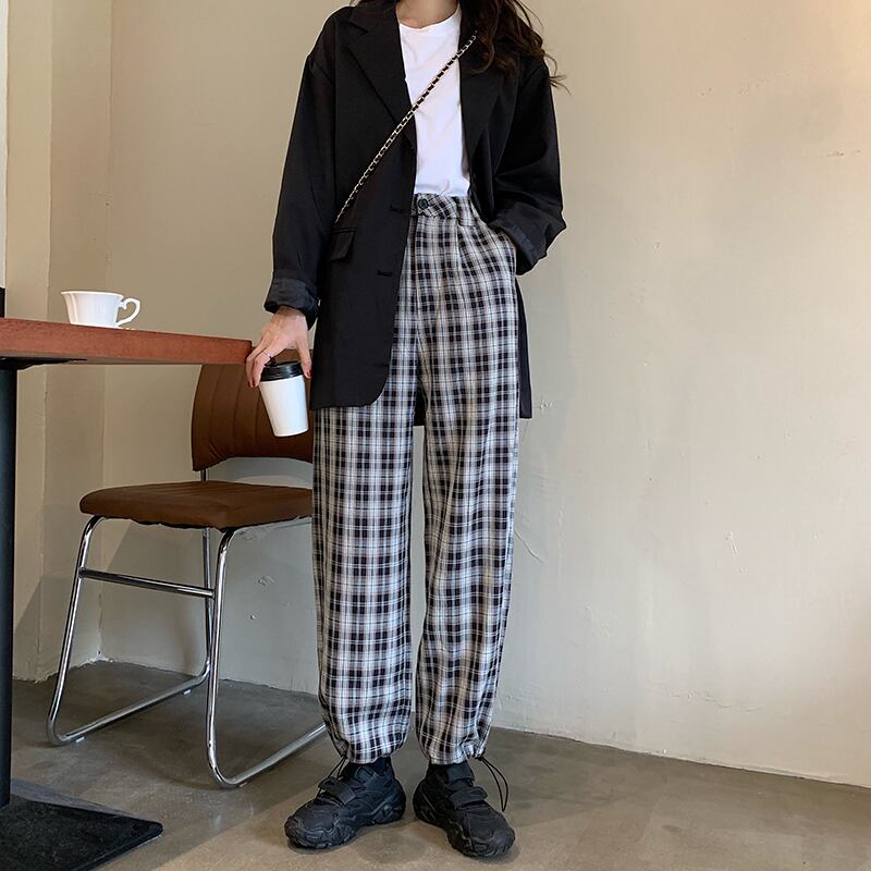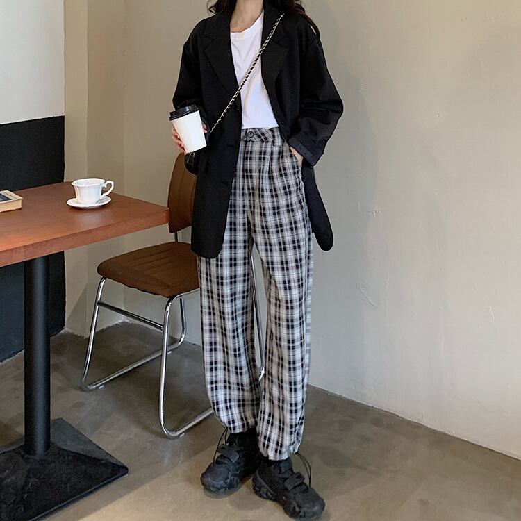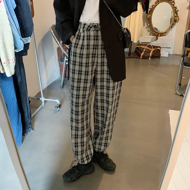 チェック柄カジュアルパンツレディース2020年秋ルーズワイドレギンスハイウエストシンストレートパンツトレンドの新バージョン クレセントシティ39590817111