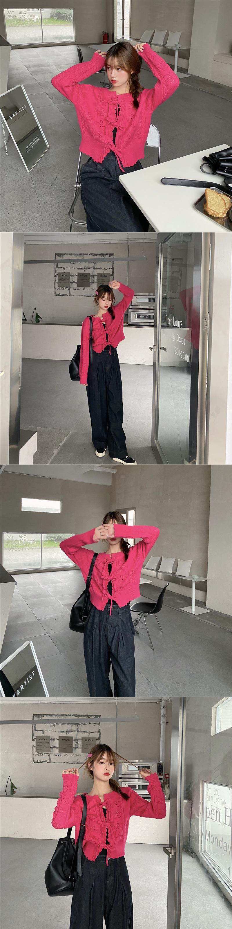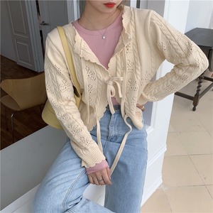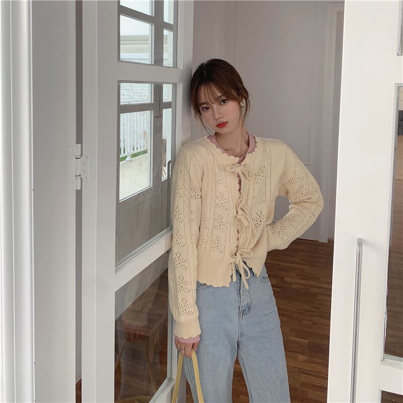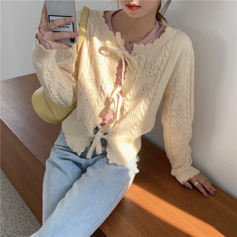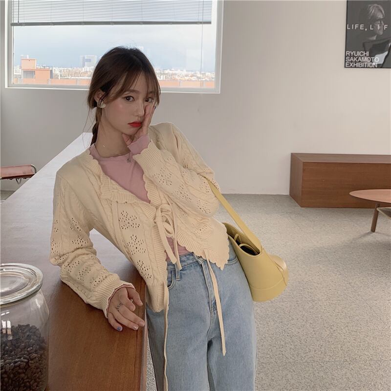 レースアップボウセーターレディース2020年初秋新作スタイルルーズレースカラー中空ニットカーディガンジャケットトレンド クレセントシティ67397135246