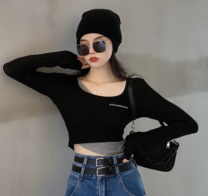 スーツの女性の2020年初秋に偽のツーピースブラックTシャツの新バージョン+ダブルベルトハイウエストルーズワイドレッグパンツトレンド クレセントシティ35186407454