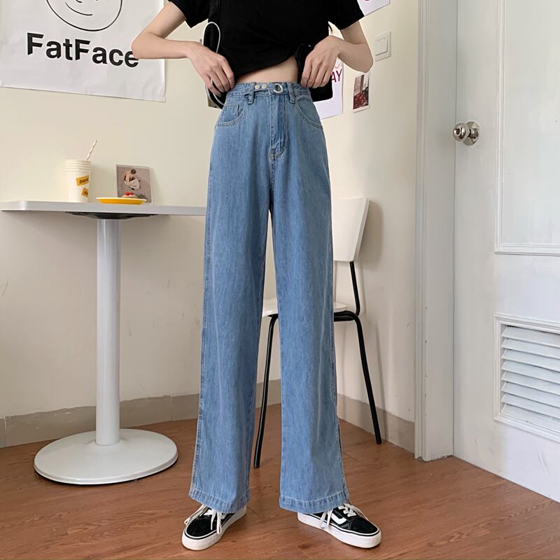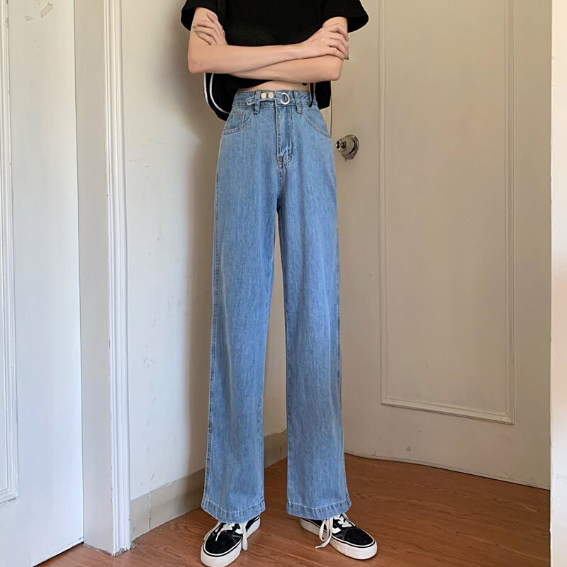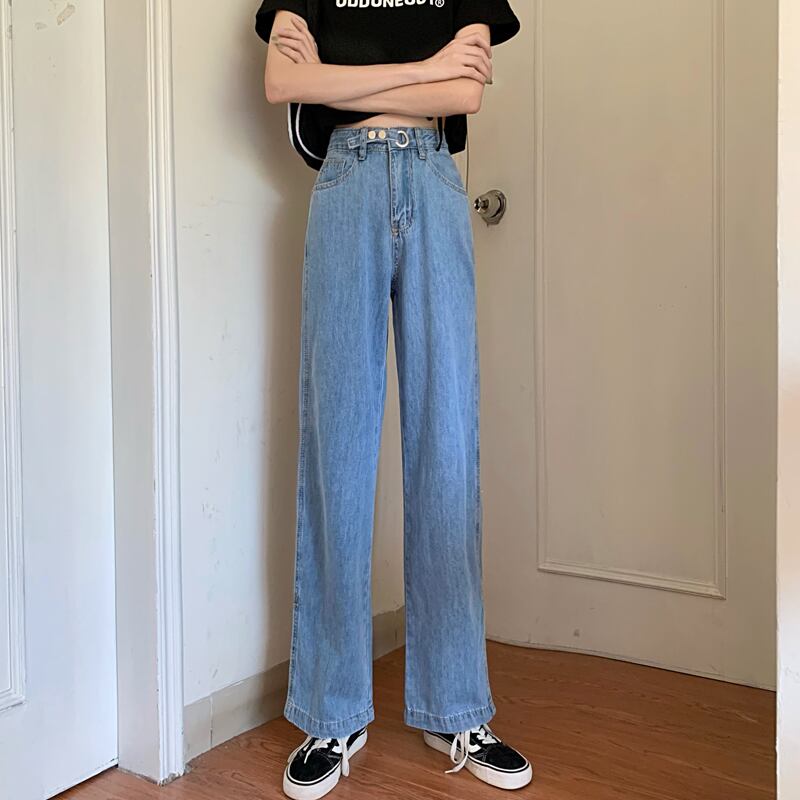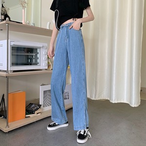ブルーハイウエストジーンズレディース2020年初秋新作スモールデザインセンスルーズ&シンスプリットパンツ クレセントシティ23293586022