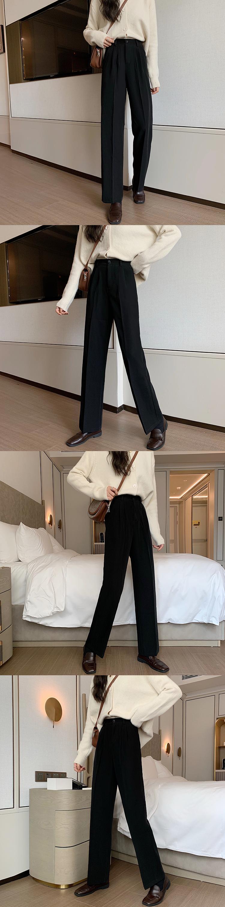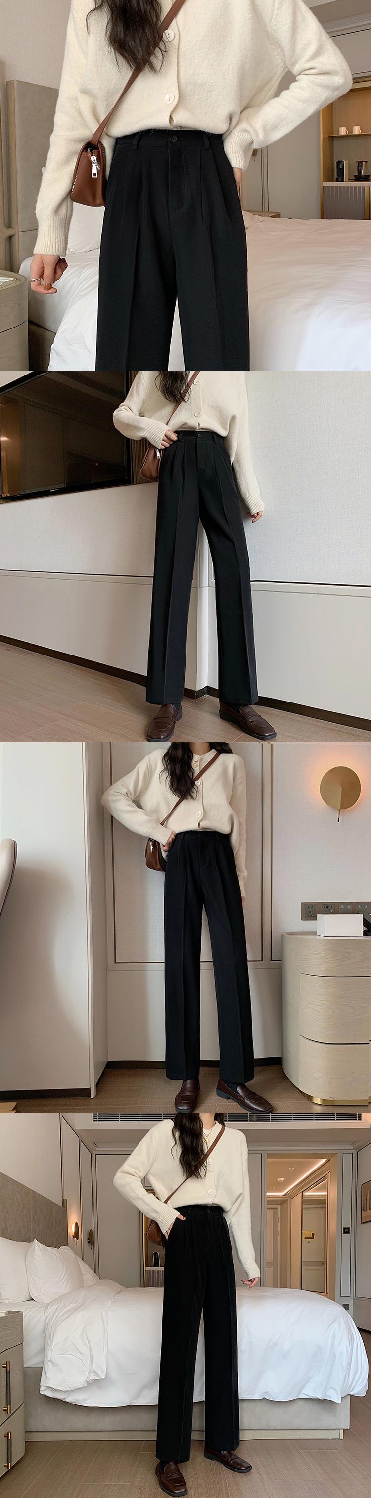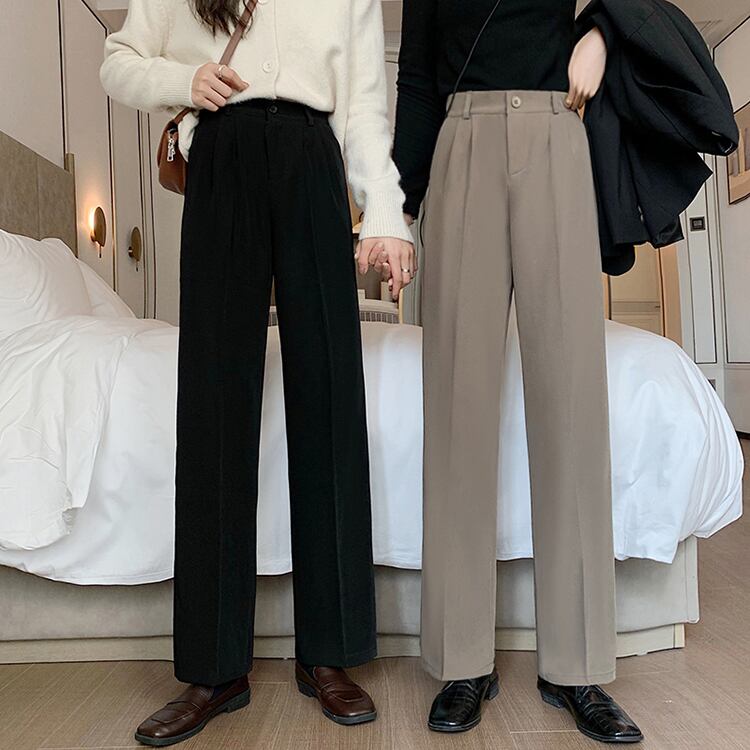 2020年新バージョンの秋のスーツパンツレディーススモールトールウエストルーズスリムワイドレッグドレープストレートパンツ クレセントシティ9855001812
