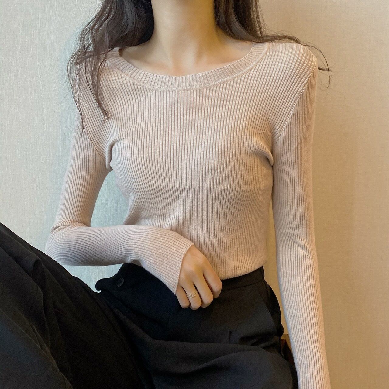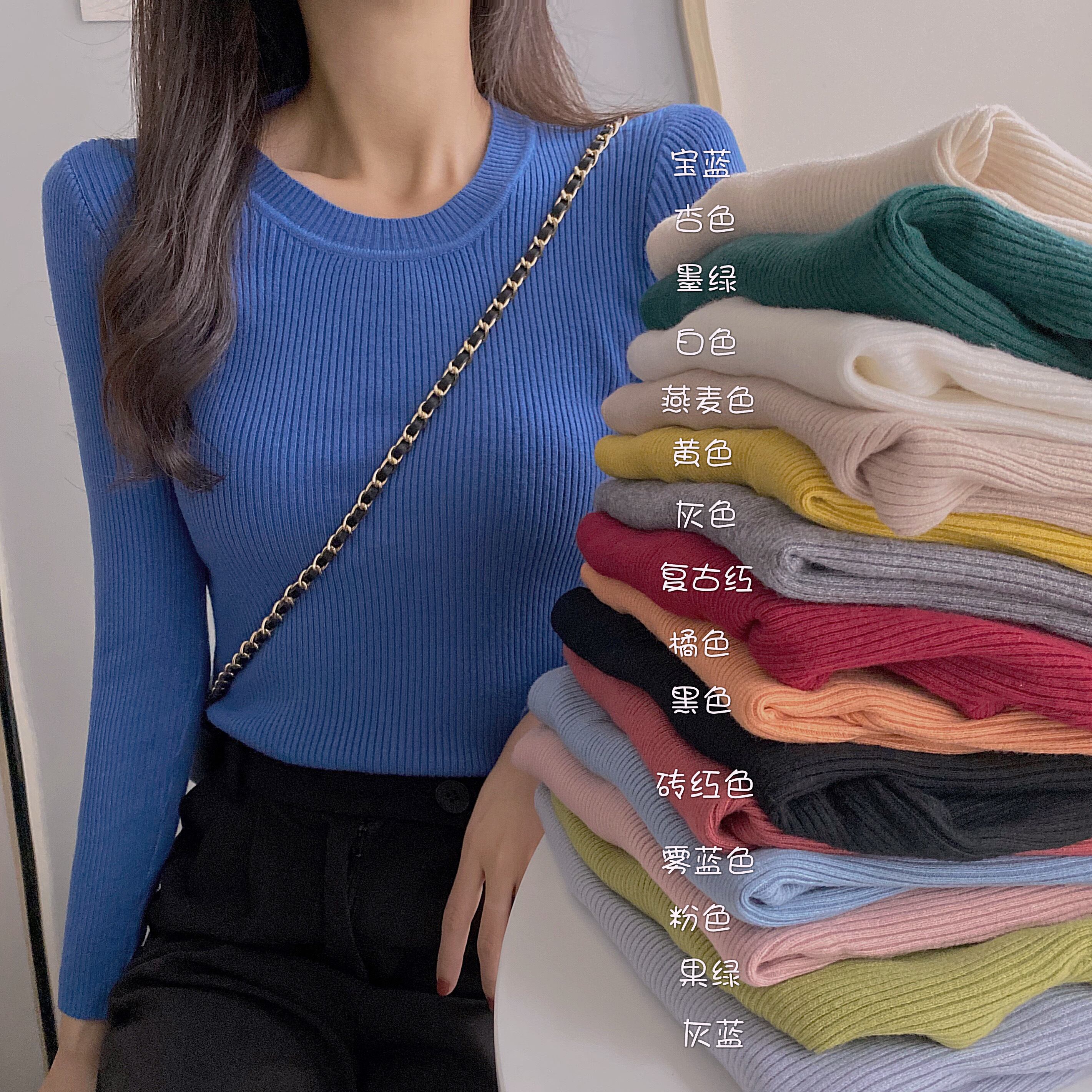 秋のラウンドネック無地セーター薄片女性2020年新作スリムスリミングインナー長袖ボトミングシャツトレンドのバージョン クレセントシティ16022474044