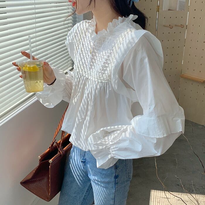 シャツ女性デザインセンスニッチ2020年初秋レトロパレススタイルレーススモールフライングスリーブルーズシャツの新バージョン クレセントシティ51744745251