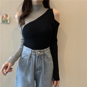 2020年秋新バージョンのハーフハイネックコントラストオフショルダーセーターレディースインナーボトミングシャツ長袖ニットトップトレンド クレセントシティ43137584990