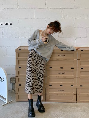 色:ヒョウ柄スカート10220,グレーのセーター10262