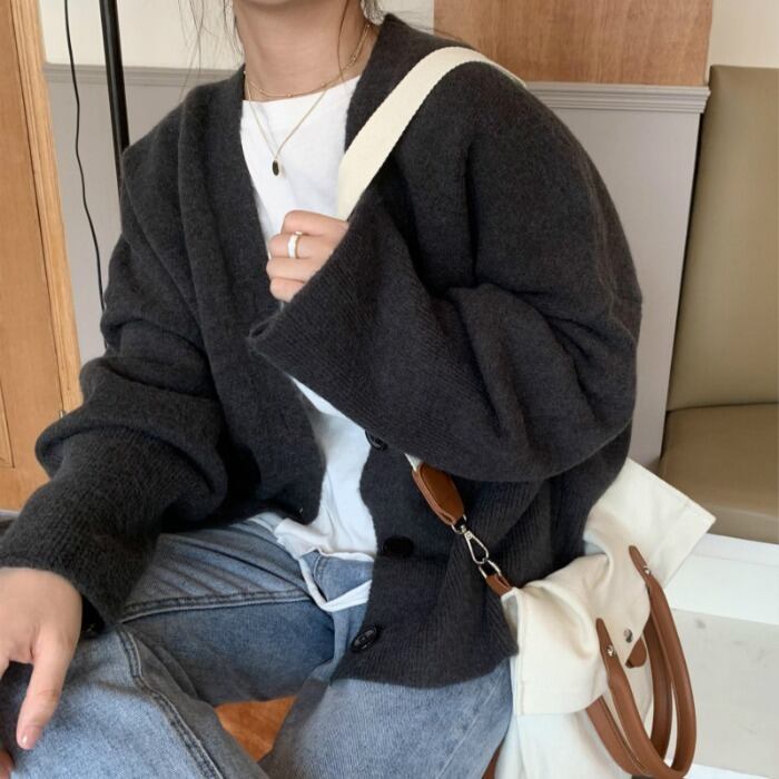 怠惰なスタイルのセータージャケット女性2020年秋冬新バージョンルーズワイルドピュアカラーニットカーディガンジャケットジャケット クレセントシティ19326251500