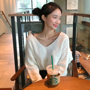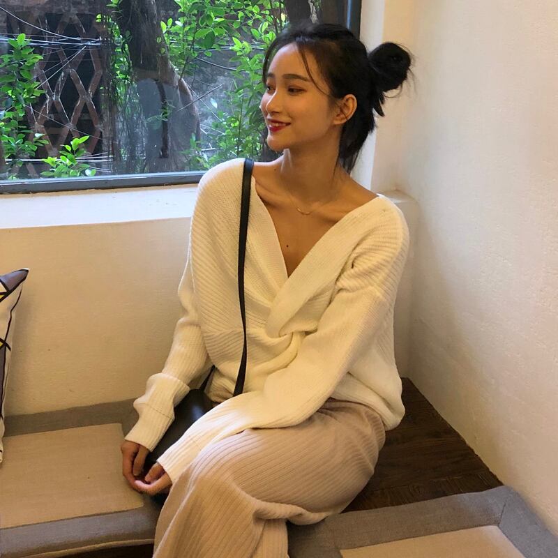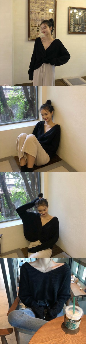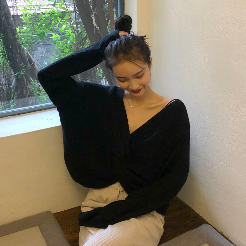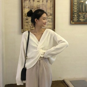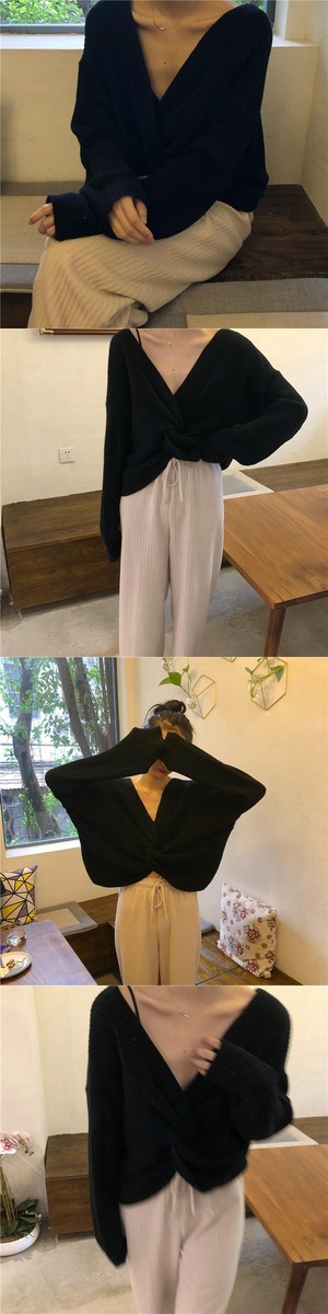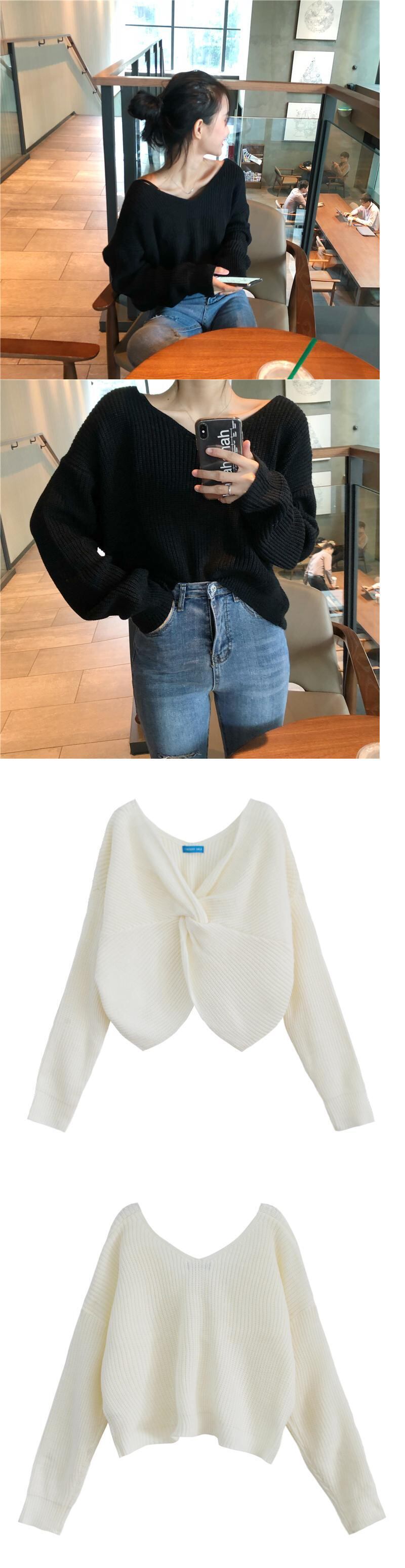 セーターウィメンズフロント&バックウェア2020ニュースタイルツイストオータムショートクロップドVネックシンルーズセーター クレセントシティ15898995875