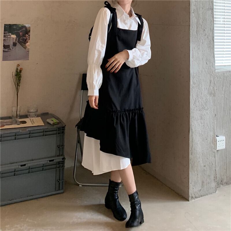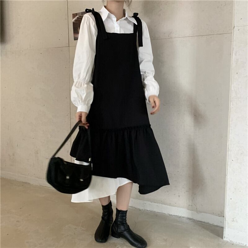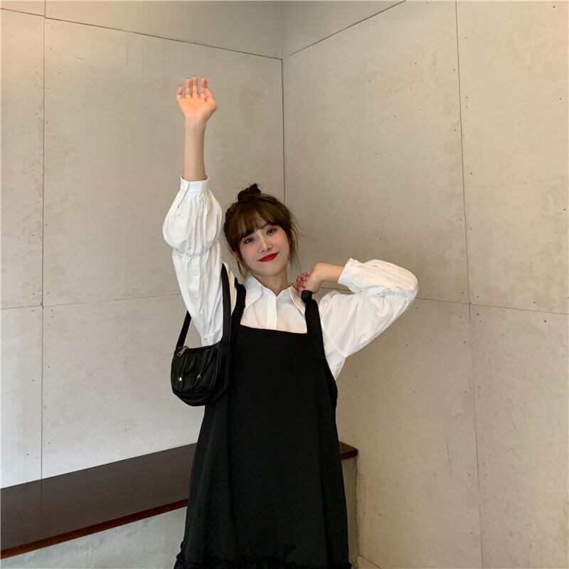 色:白いシャツ81234#のワンピース,スプライスサスペンダースカートシングルピース81235#