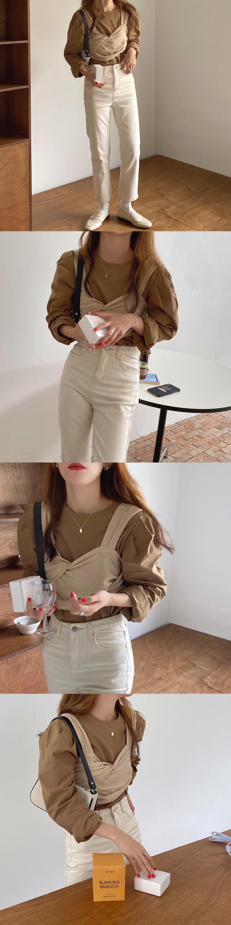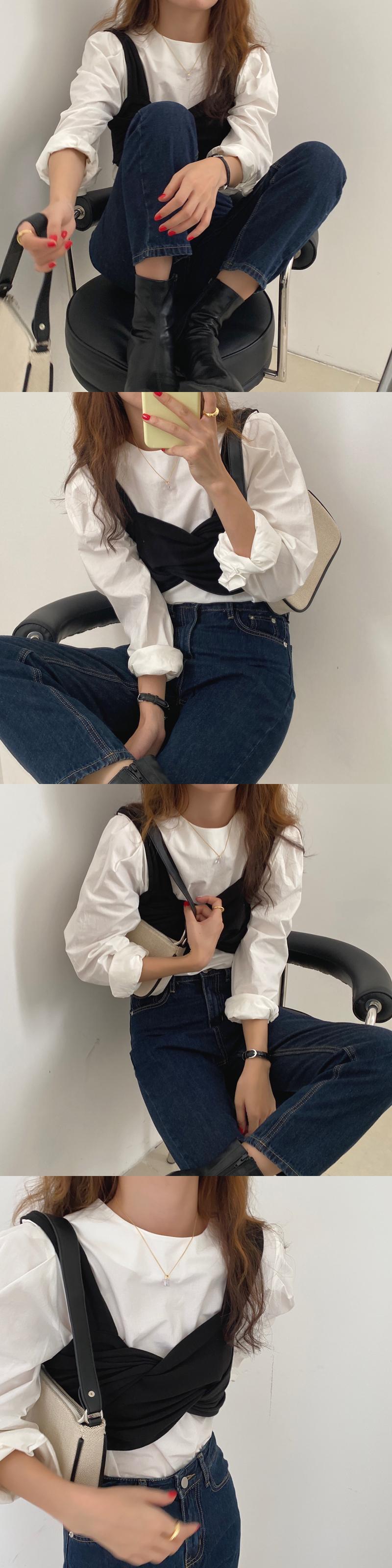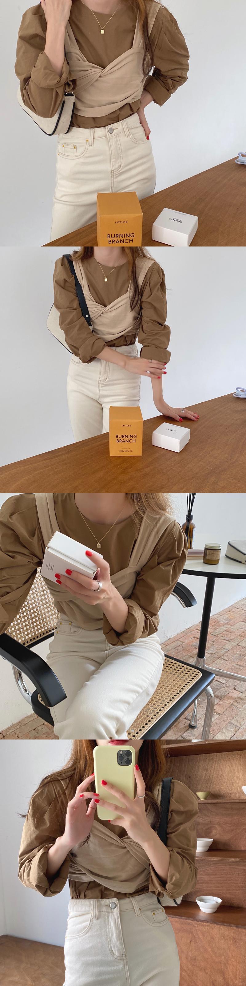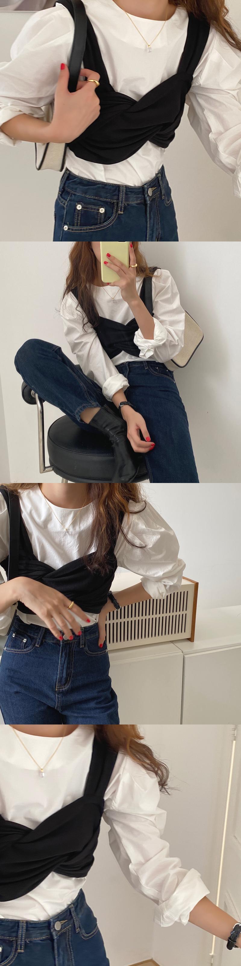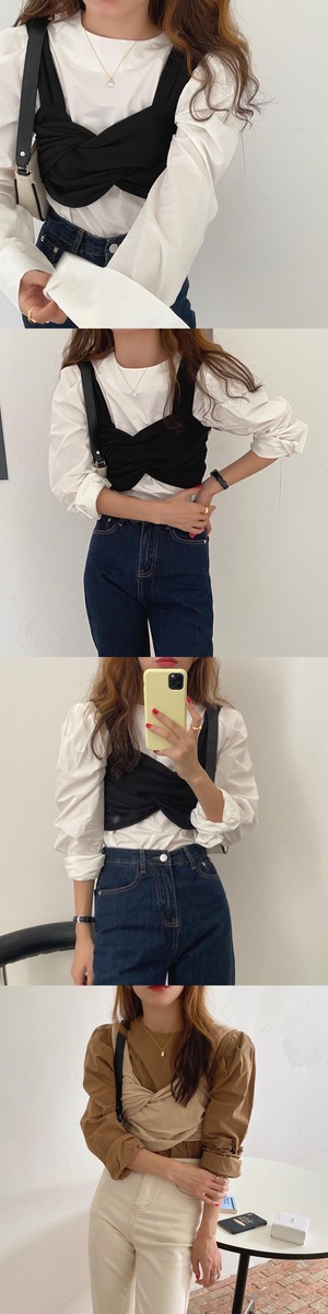 シャツ女性デザインセンスニッチ2020年初秋新しいフレンチルーズパフスリーブトップ+レイヤードアウターストラップ クレセントシティ18527389265