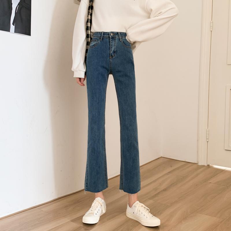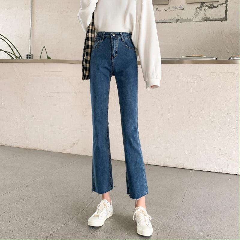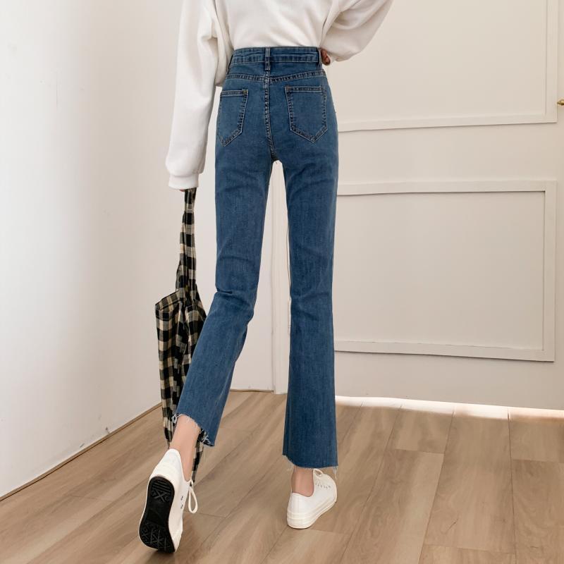 ウエストジーンズレディース2020新バージョンスリムスリミングマイクロフレアパンツオールマッチスモールフィートペンシルパンツナインポイントパンツ クレセントシティ49720989346