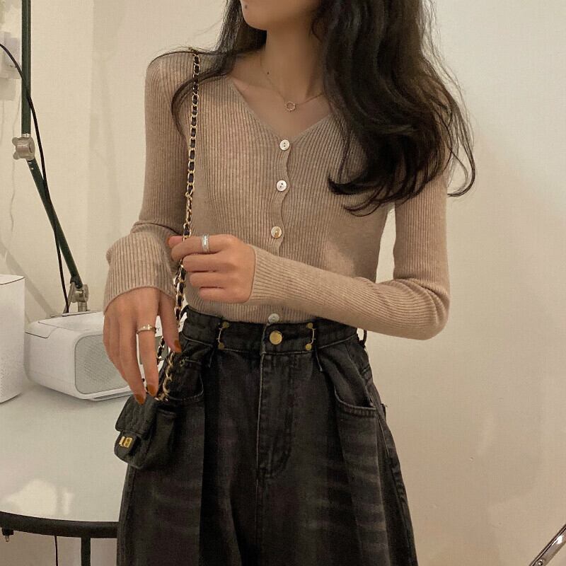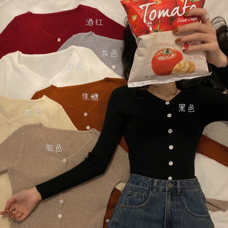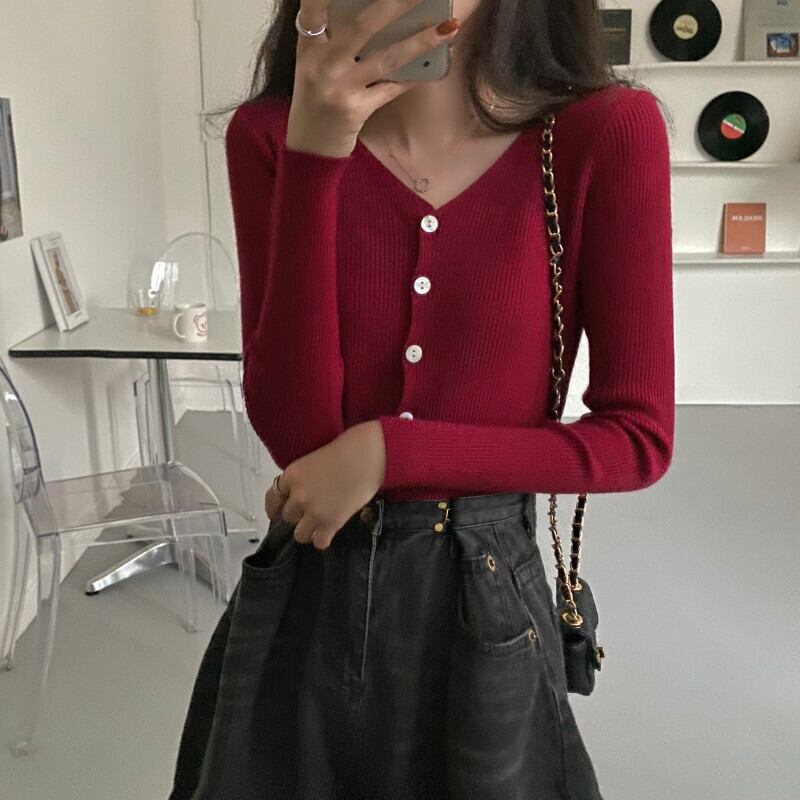 ニットカーディガンレディースウェア2020秋新入生Vネックスリムフィット、赤いジャケット クレセントシティ10868003220