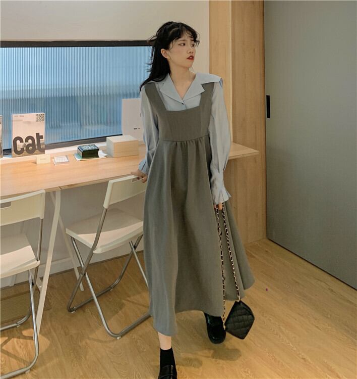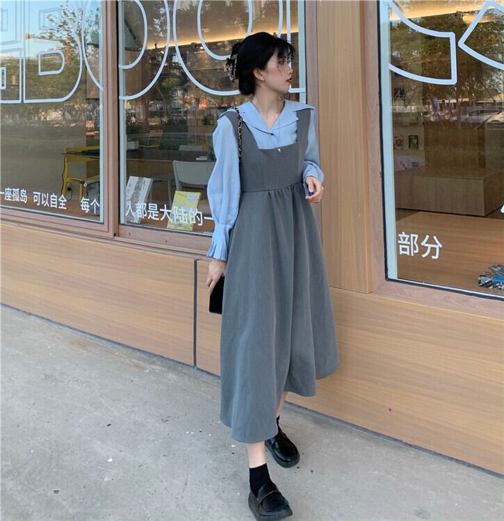 2020年初秋女性のスーツ新しいスタイルのルーズで薄いデザインのシャツ+ハイウエストのAラインベストスカート クレセントシティ28243391554