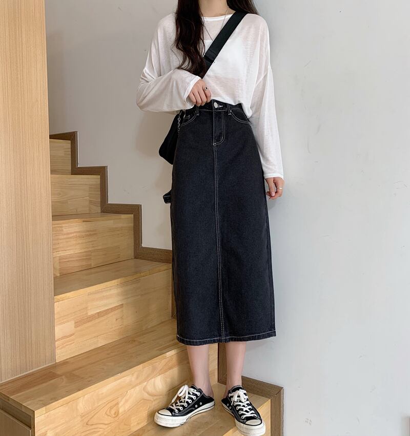 ウエストデニムスカート女性2020年秋新バージョンレトロスリムスプリット気質ミドル丈スカートAラインスカート クレセントシティ86859060291