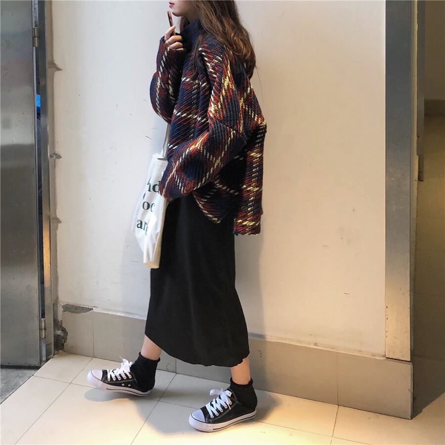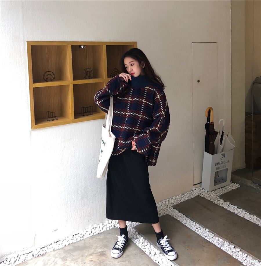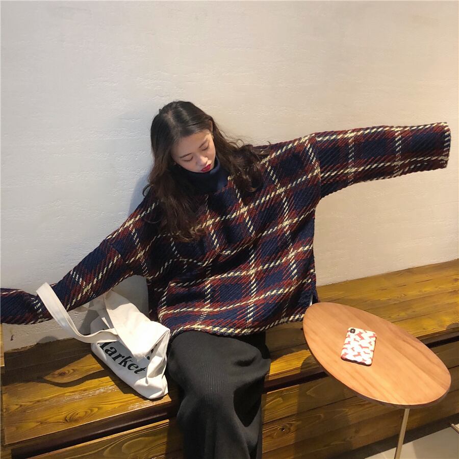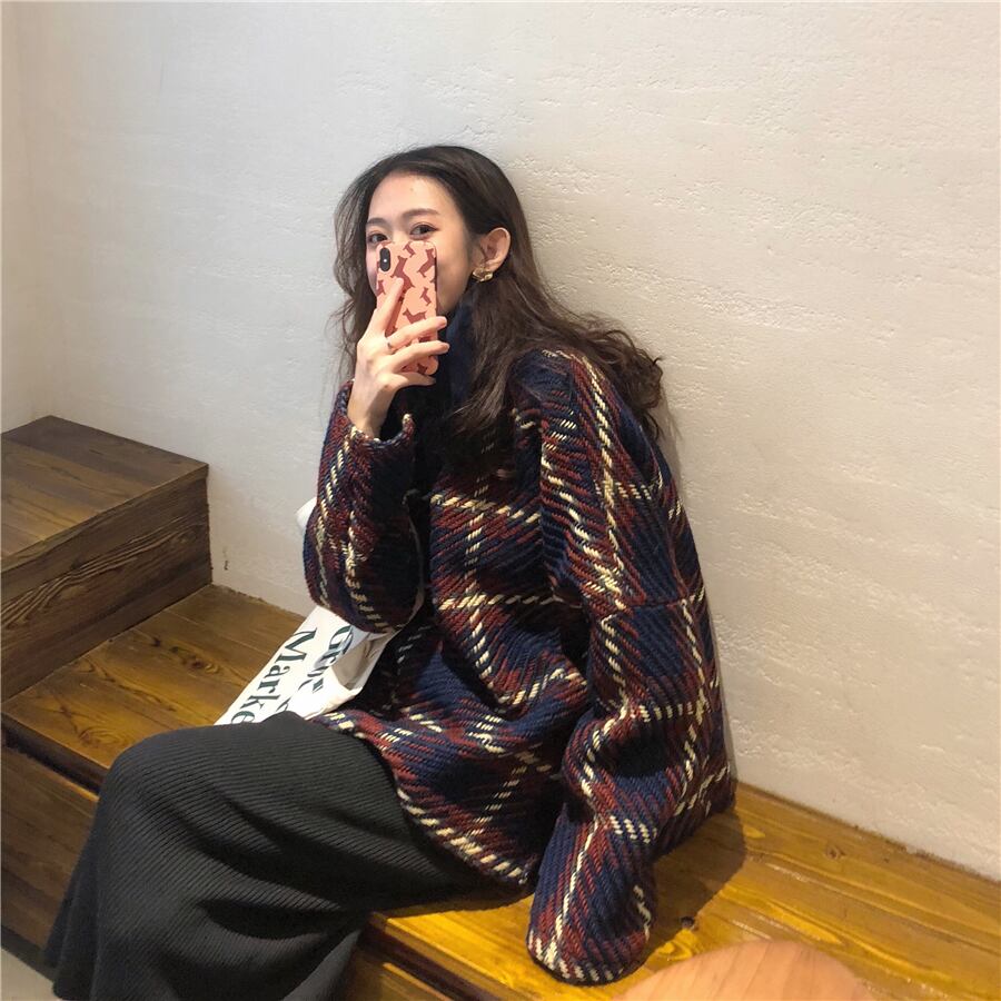 スタンダードオータムルーズ格子柄ジャケット ニットスカート レトロ 秋物 クレセントシティ18513457228