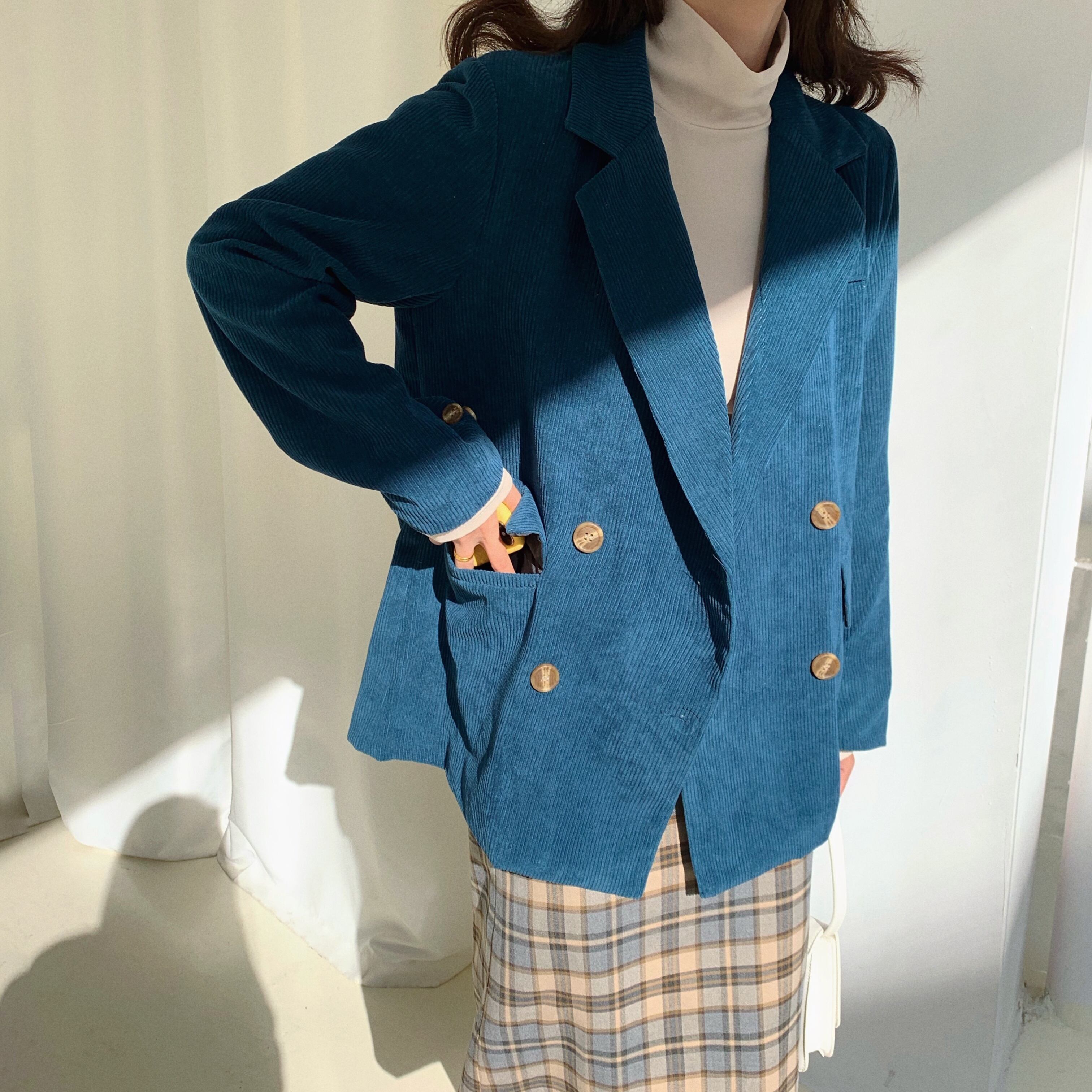 ネットレッドスモールスーツジャケットレディース秋冬メンズ&レディースルーズ気質レトロミドル丈カジュアルスーツジャケット クレセントシティ41392613965