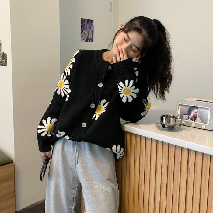 デイジーニットカーディガンレディース2020年秋新バージョンルーズレトロ怠惰なセータージャケット潮 クレセントシティ15045198870