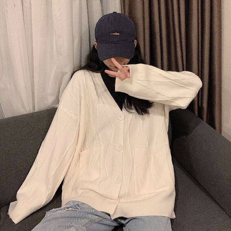 ピュアカラーのセーターコート女性の2020年秋冬新バージョンのルーズで用途の広いレイジースタイルのアウターニットカーディガントップ クレセントシティ8302788435