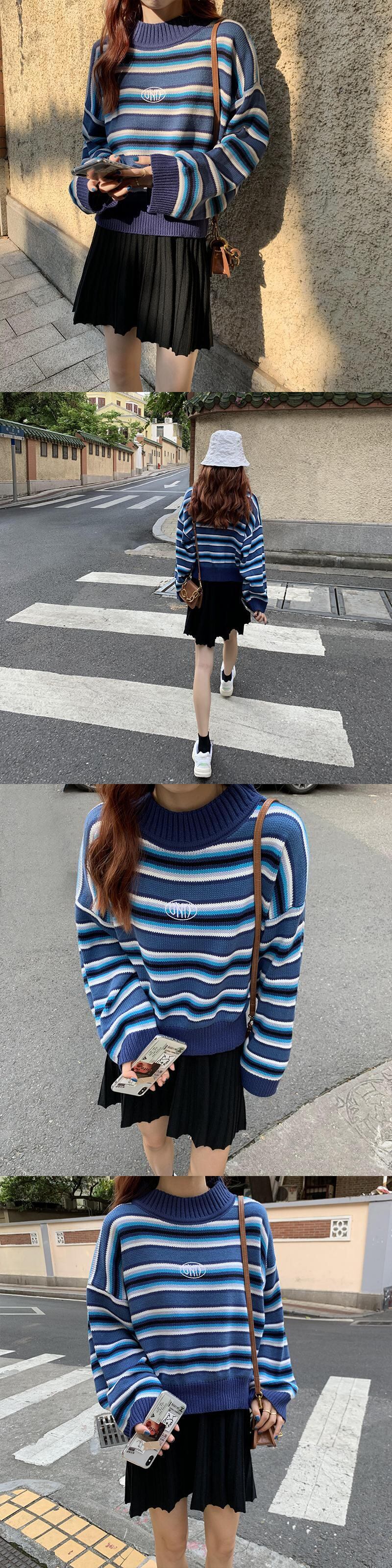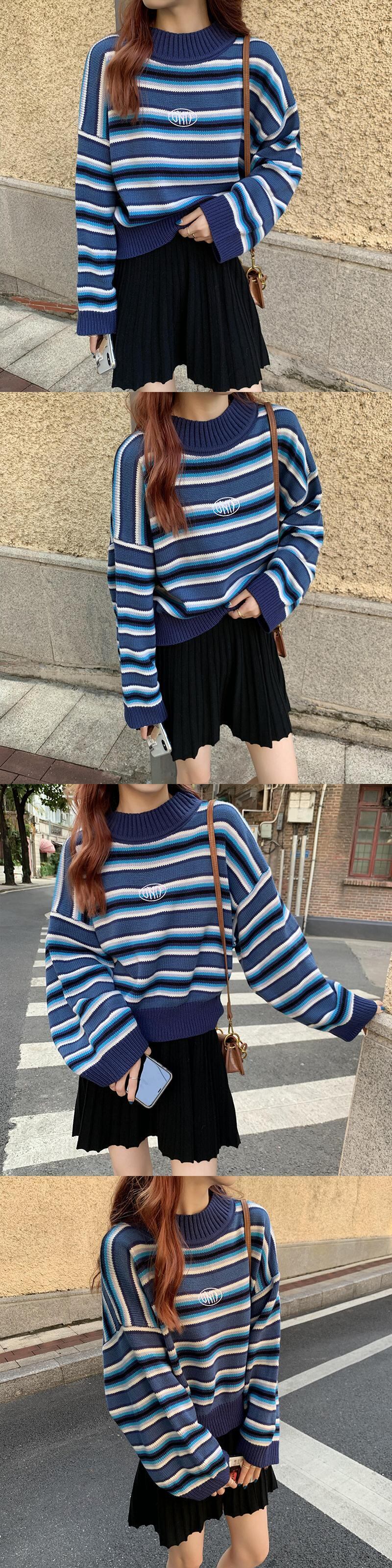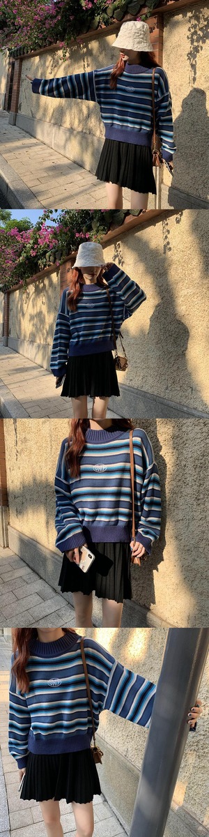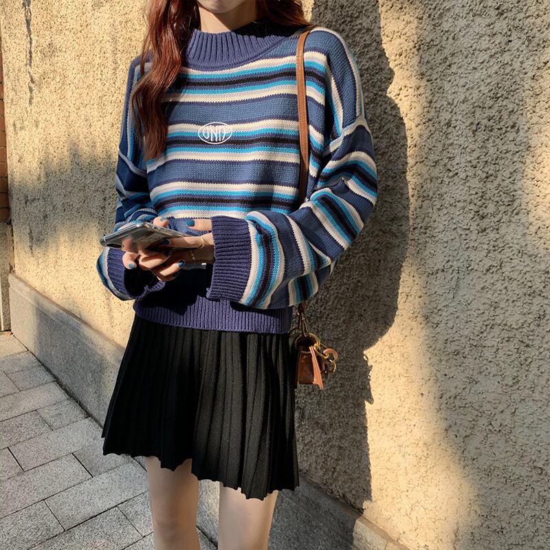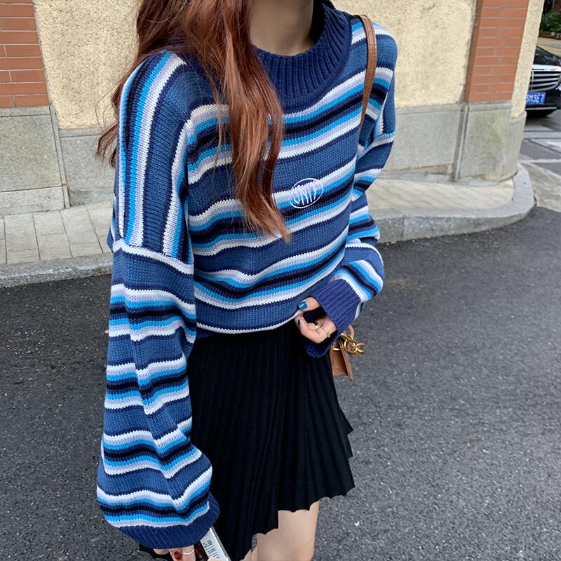 クレセントシティストライププルオーバーセーターレディースアウターウェア2020年秋冬ルーズレイジーニットセータートップの新バージョン クレセントシティ84770258654