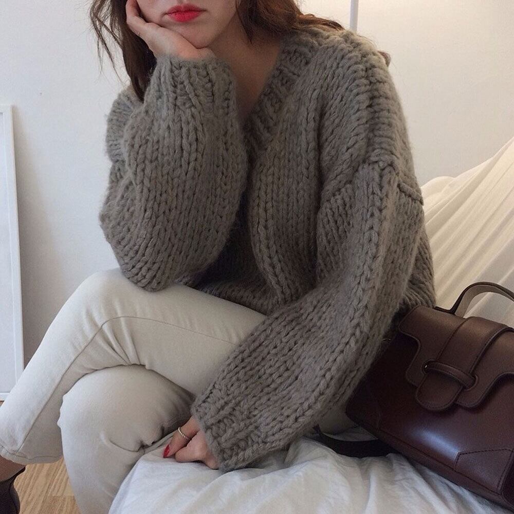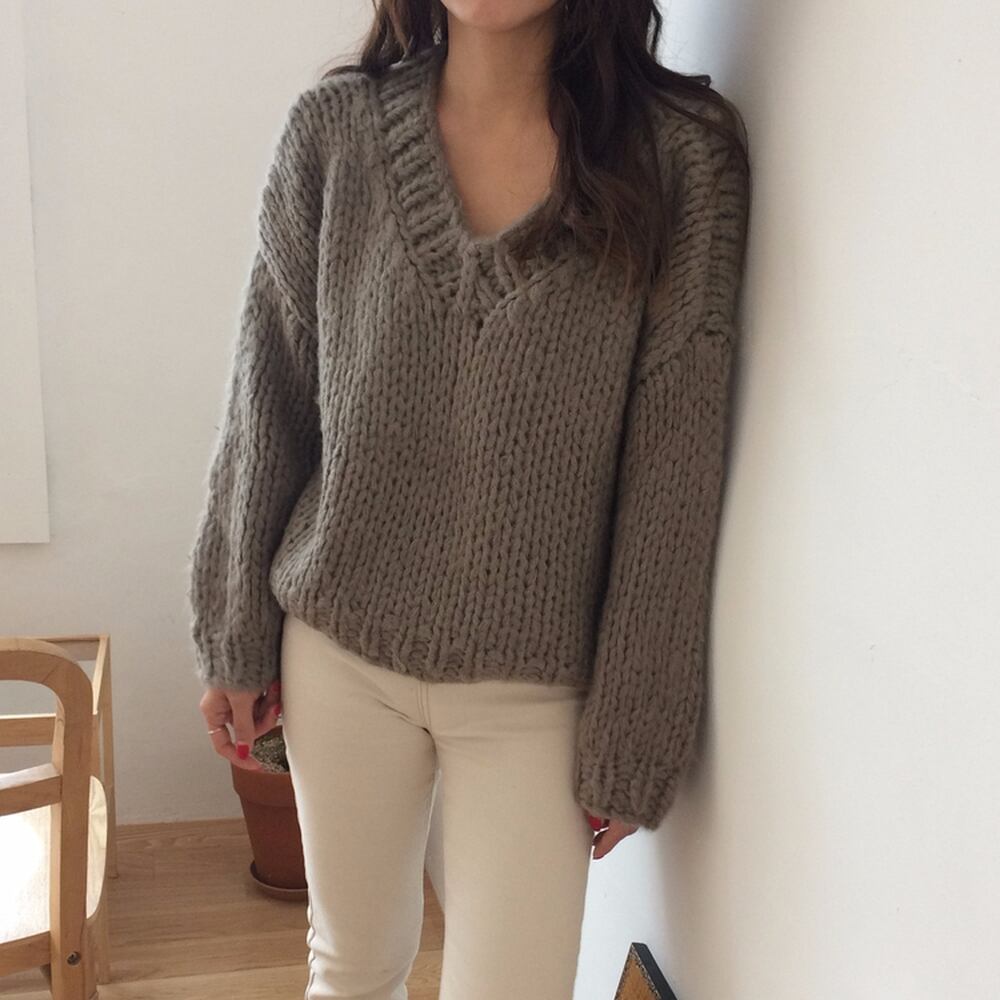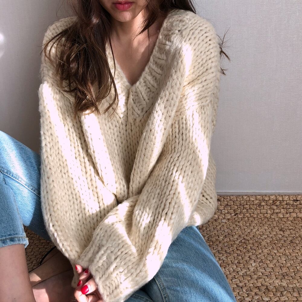 モヘアの手作りセーター女性の2020年初秋無地のルーズで薄いVネックカジュアルセーターインの新バージョン クレセントシティ41527462031