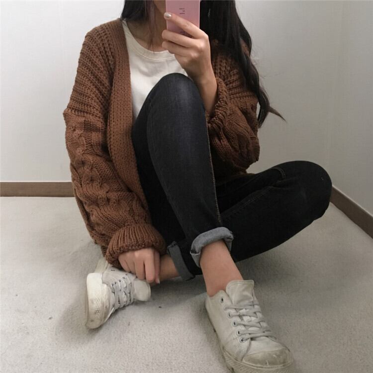 シックなルーズツイストセーターの女性の2020年初秋新入生ルーズシンニットカーディガンジャケットトレンドのバージョン クレセントシティ30490659194