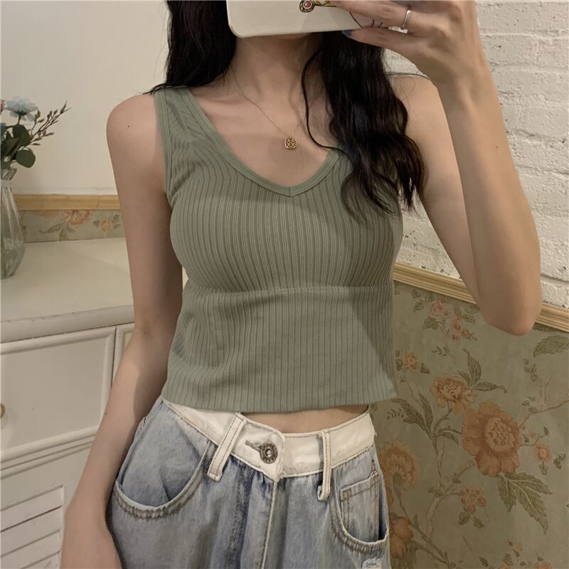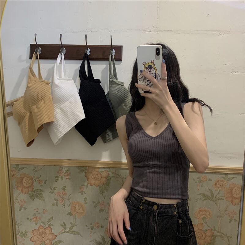 美しいバックキャミソールレディースアウターウェア2020年初秋胸パッド付きVネックベースの新しいスリムスリミングバージョン クレセントシティ30624557441