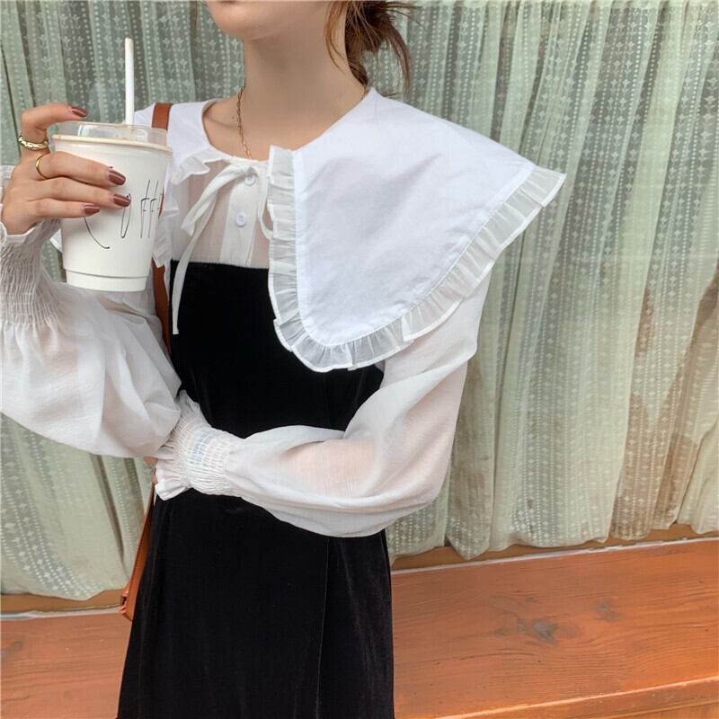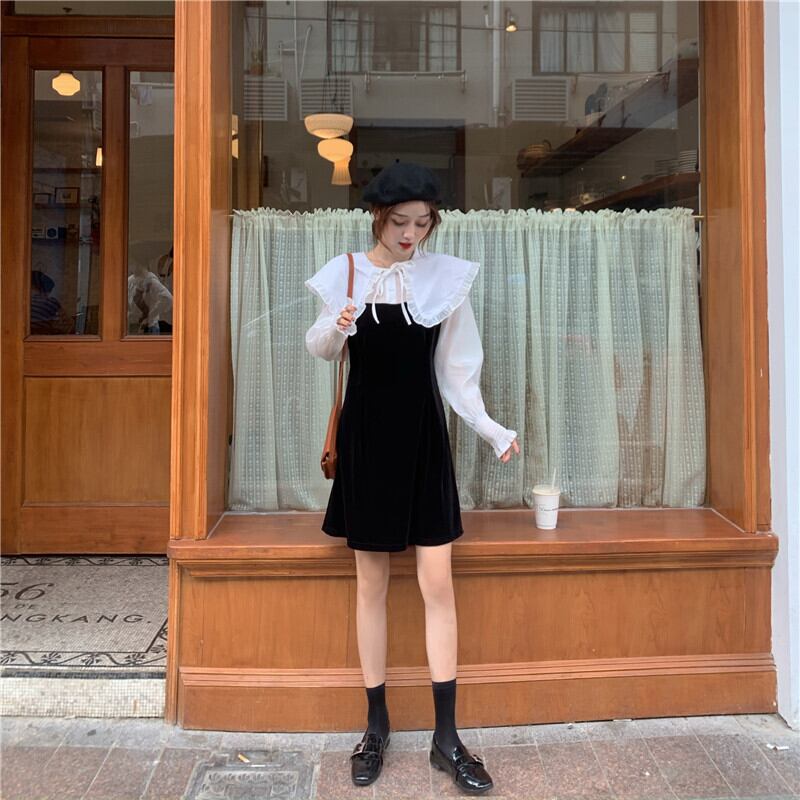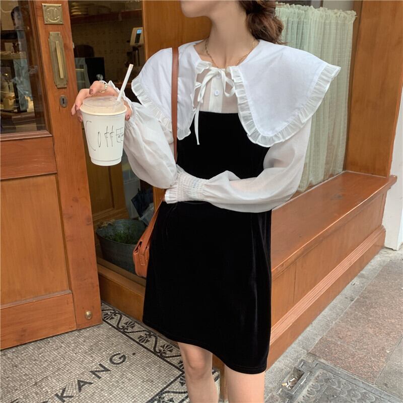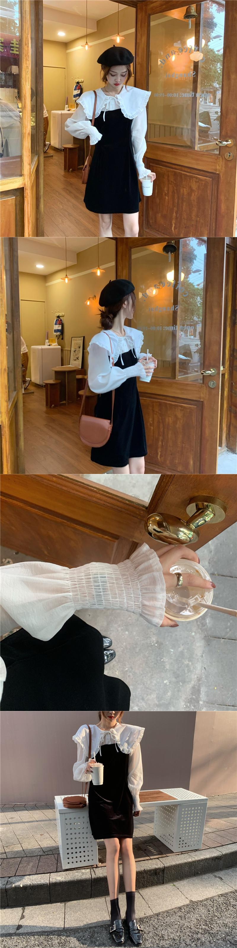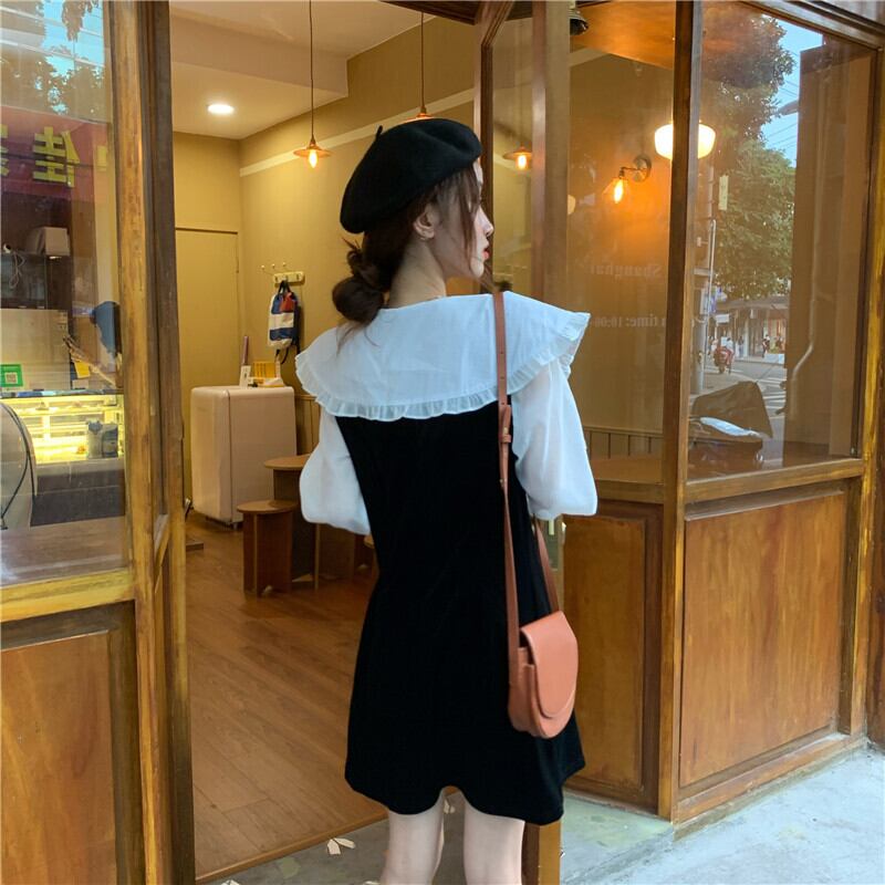 フレンチドレス女性2020年秋新作ハイウエストAライン木製耳縫い人形襟デザインセンス2フェイク クレセントシティ92650650351