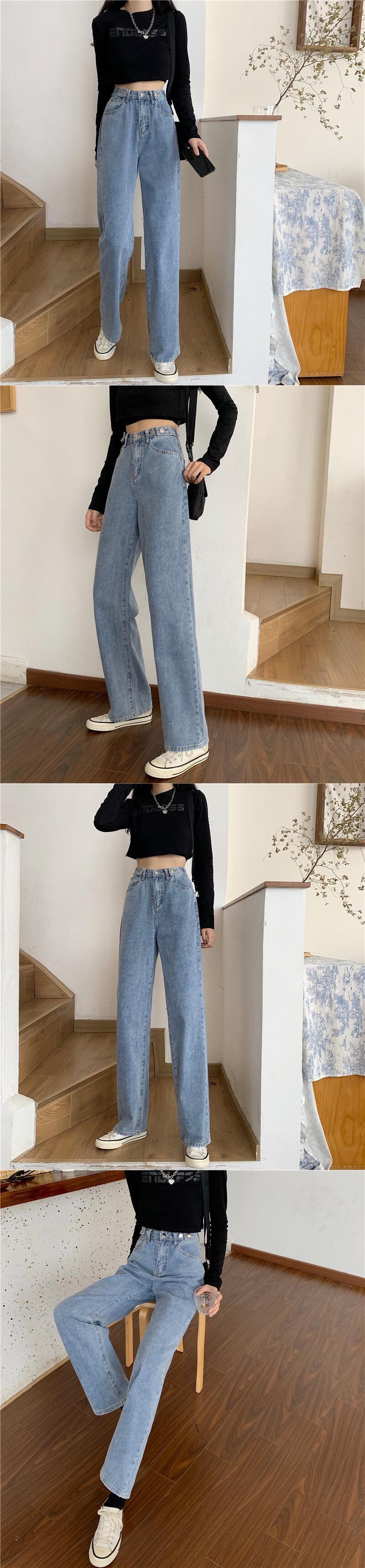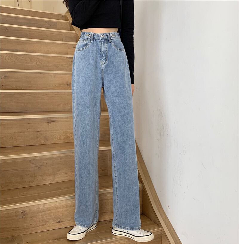 ウエストジーンズ女性ルーズワイドレッグパンツ2020新しいスリムで用途の広いストレートドレープモップパンツパンツ クレセントシティ92103057986