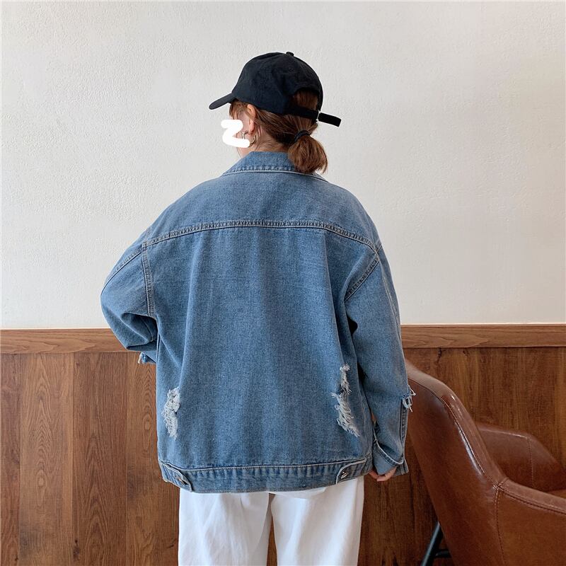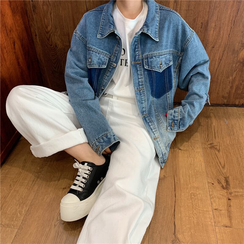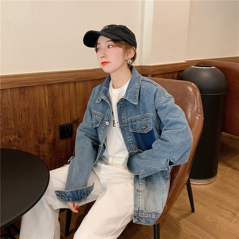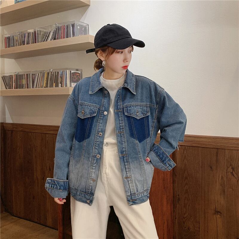 カウボーイフライドストリートジャケットレディース2020新バージョンのグラデーションブルー秋ルーズで薄いカジュアルコントラストカラーポケットトップ クレセントシティ71785595873