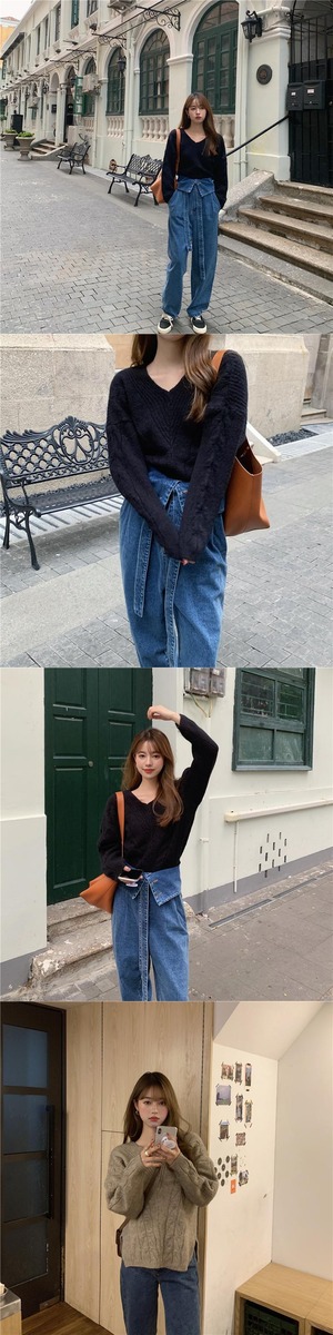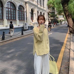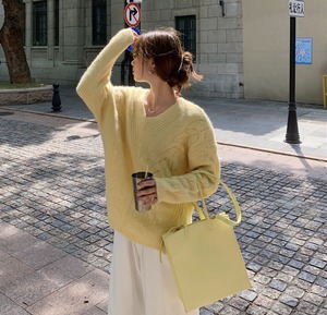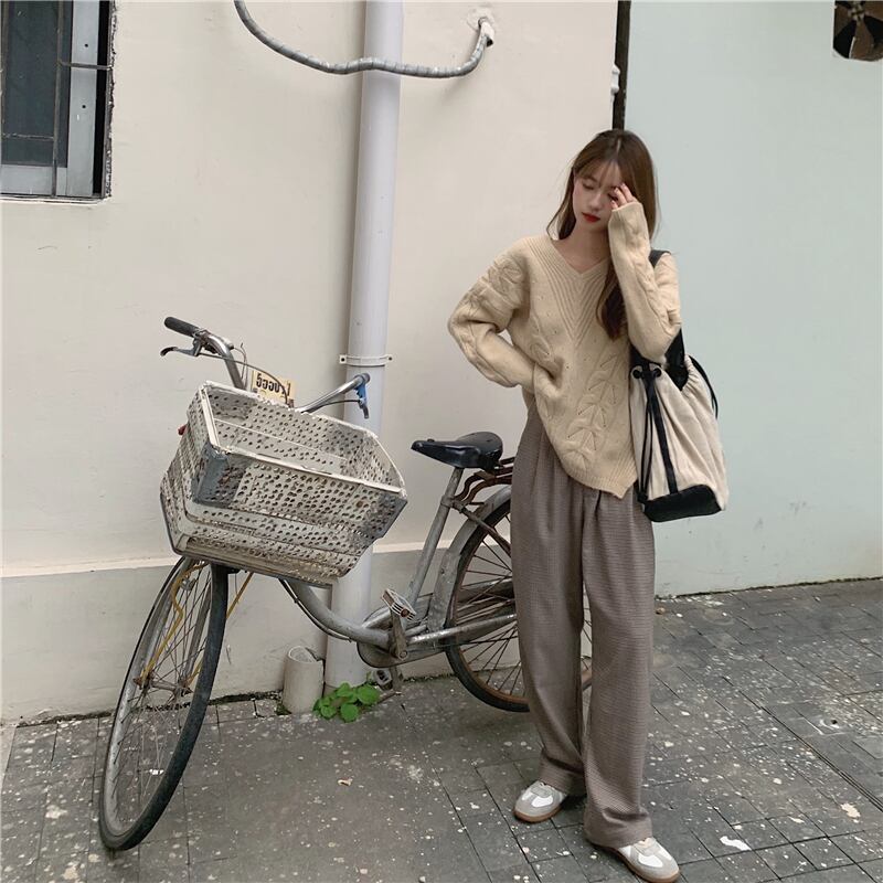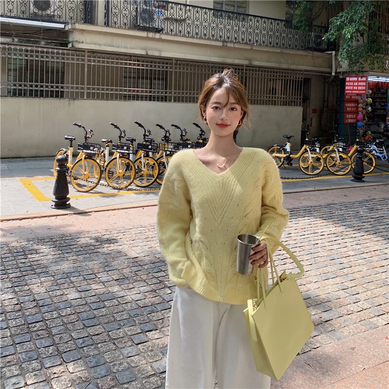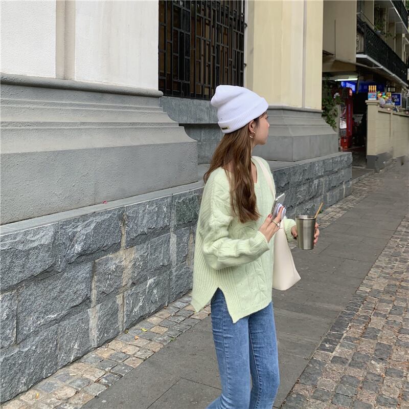 ゆるい怠惰なプルオーバーセーター女性の2020年初秋新しいVネックツイスト学生薄いスプリットトップイン クレセントシティ10258234526