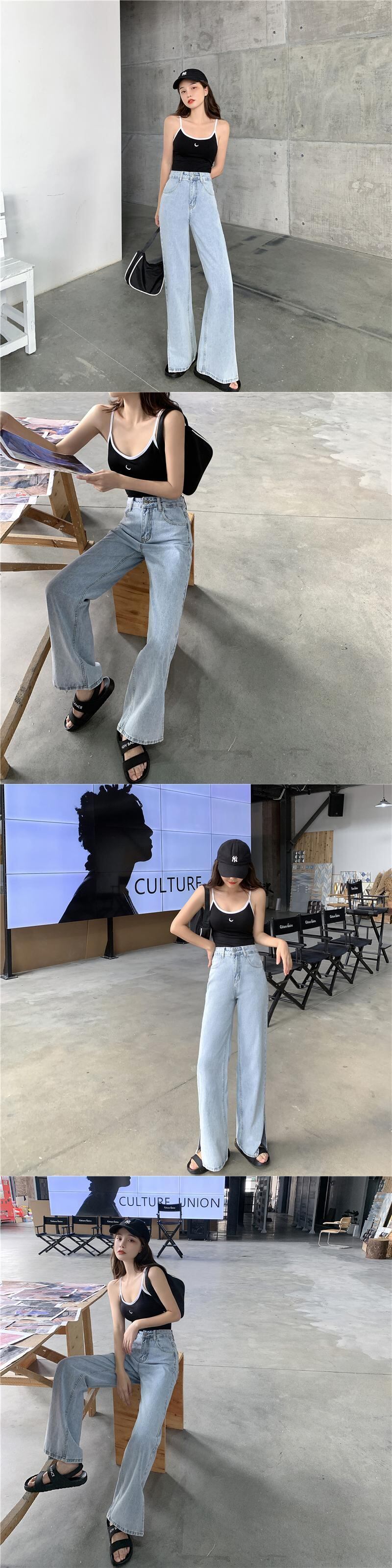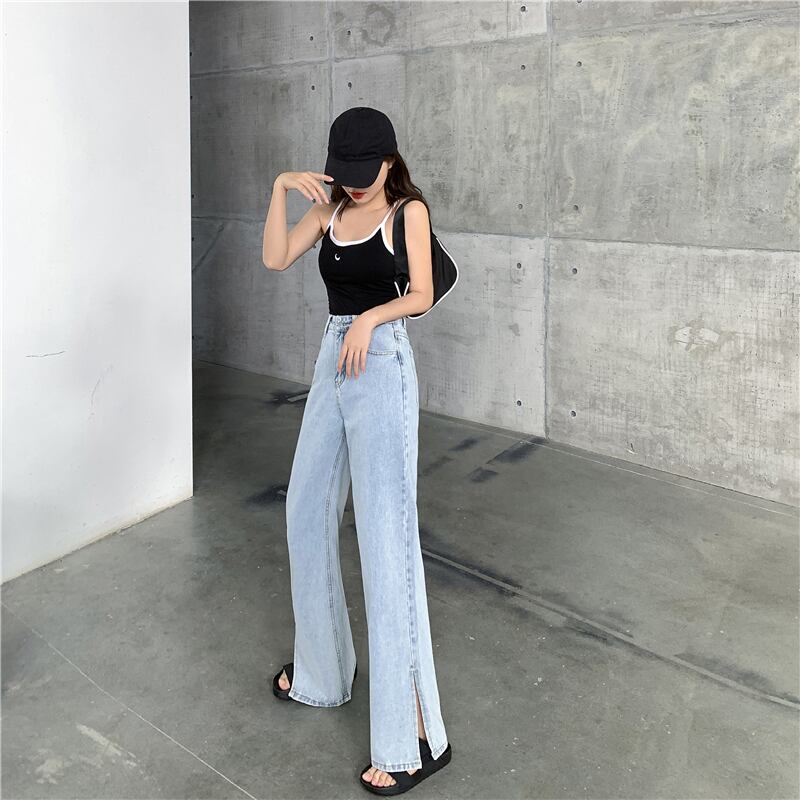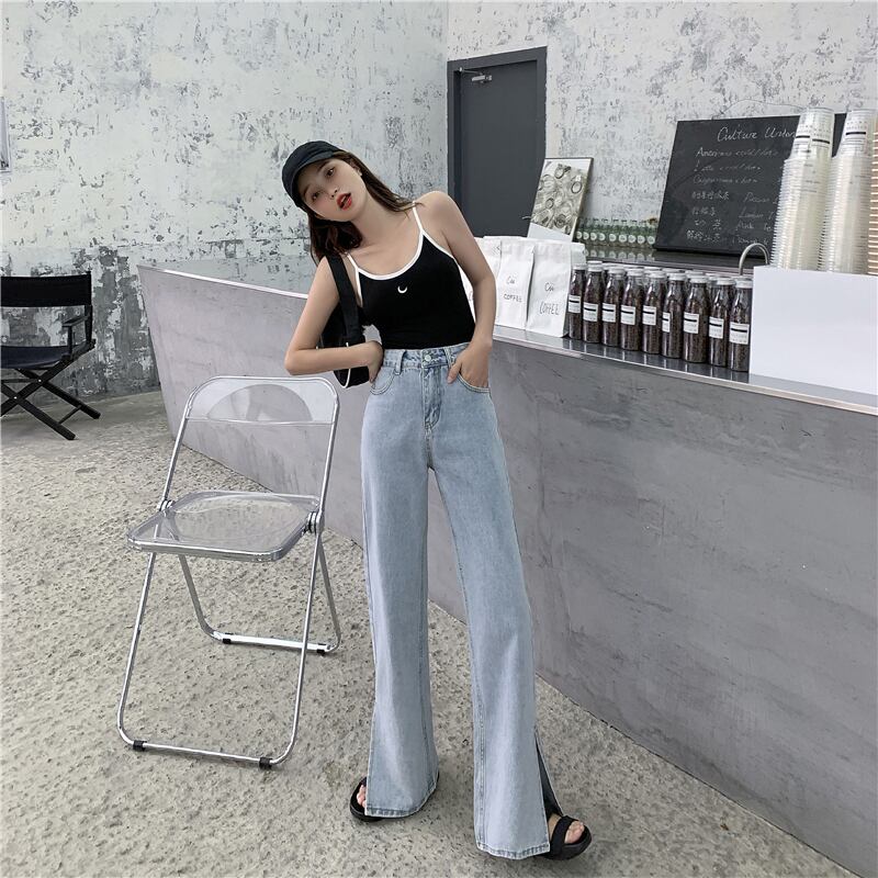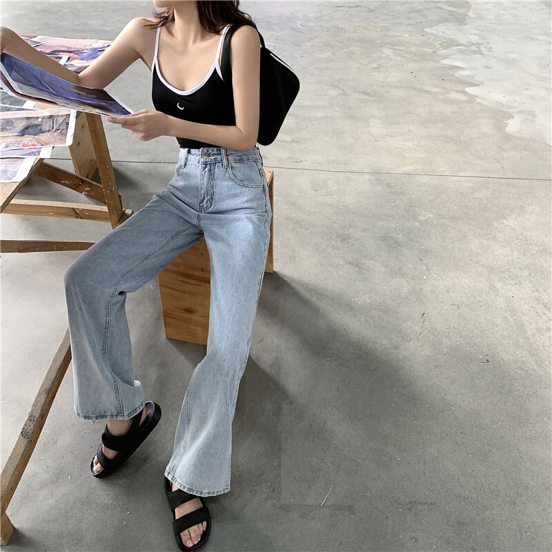 ウエストジーンズレディース2020年秋新しいルーズで薄いワイルドハイウエストドレープストレートワイドレッグパンツパンツ クレセントシティ73604075228