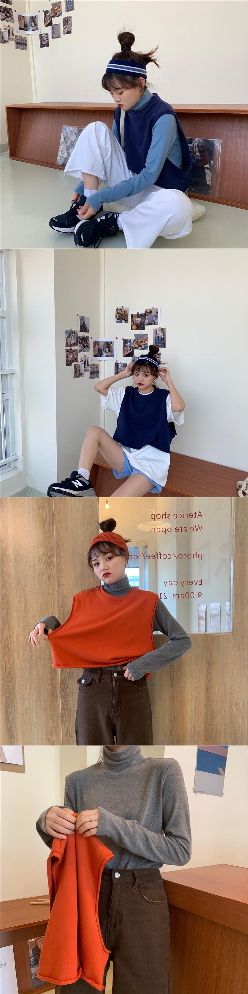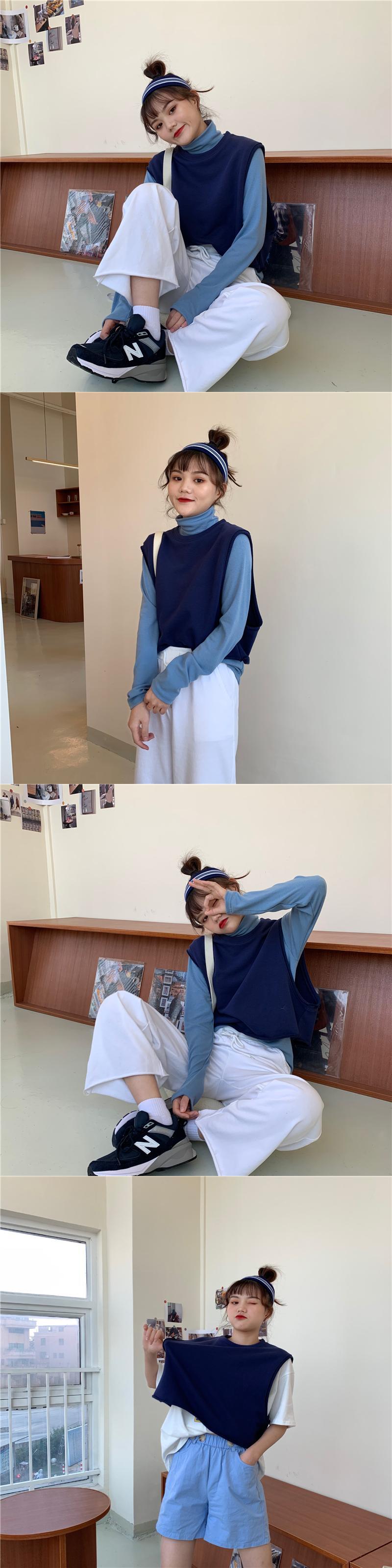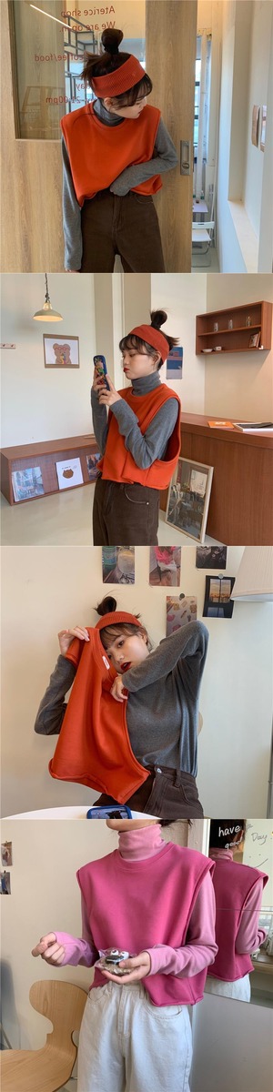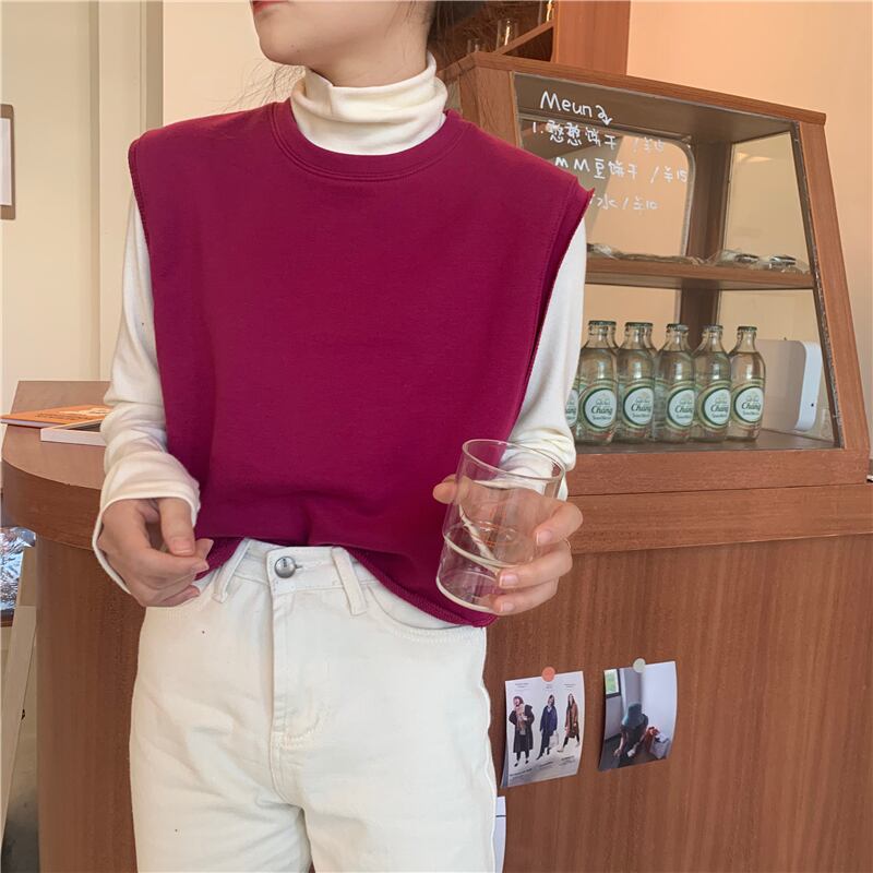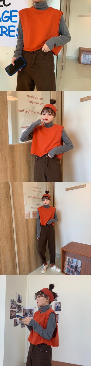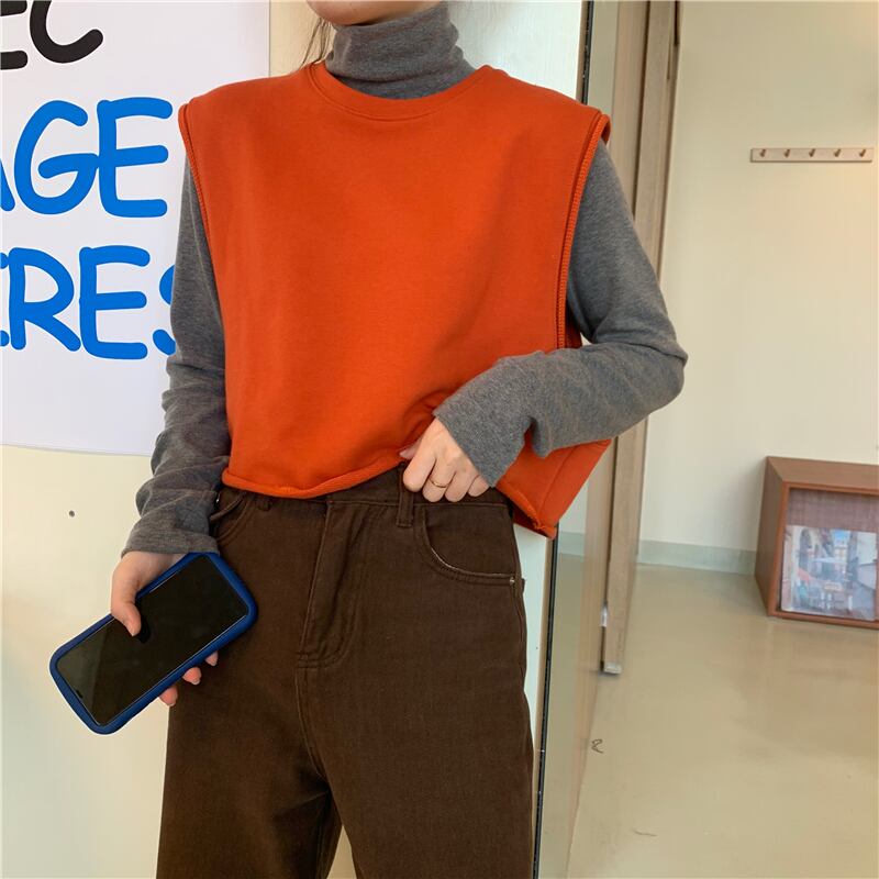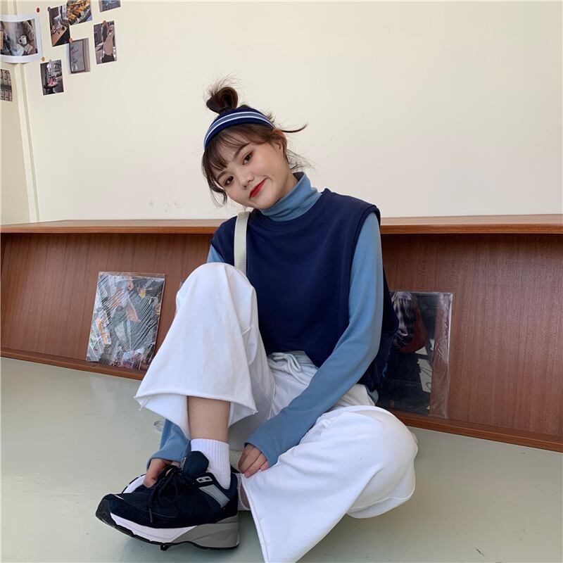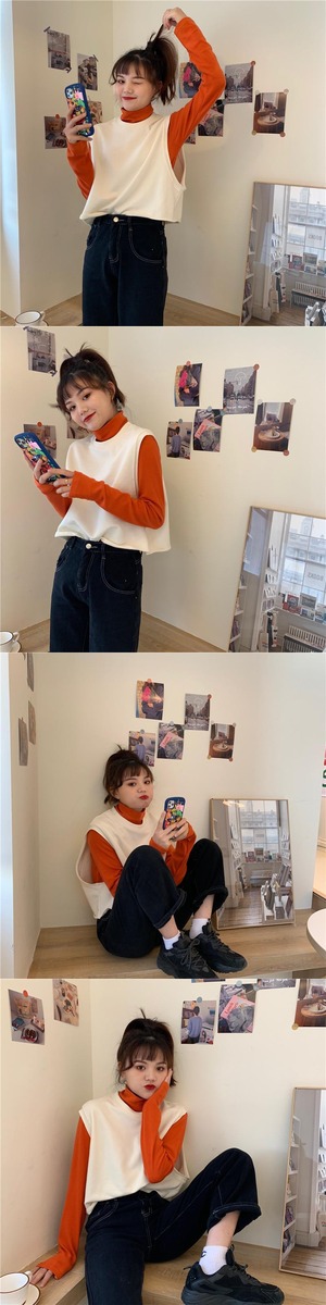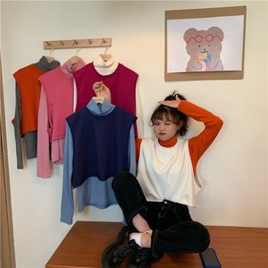 ウエスタンスタイルのルーズノースリーブセーター外側ニットベストベスト+ハイカラーボトミングシャツ厚手長袖Tシャツスーツ女性 クレセントシティ68018544206