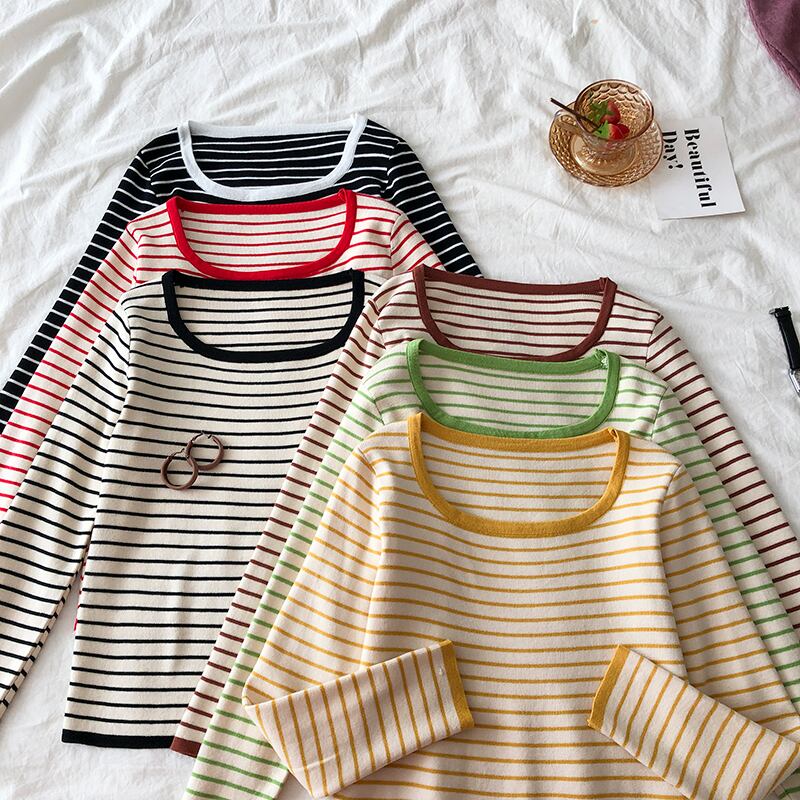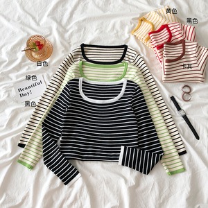 クレセントシティスクエアネックストライプニットレディース秋冬ウェア クレセントシティ95910469359