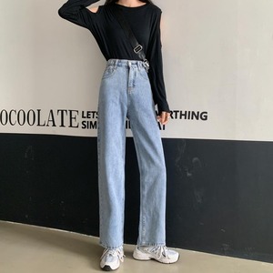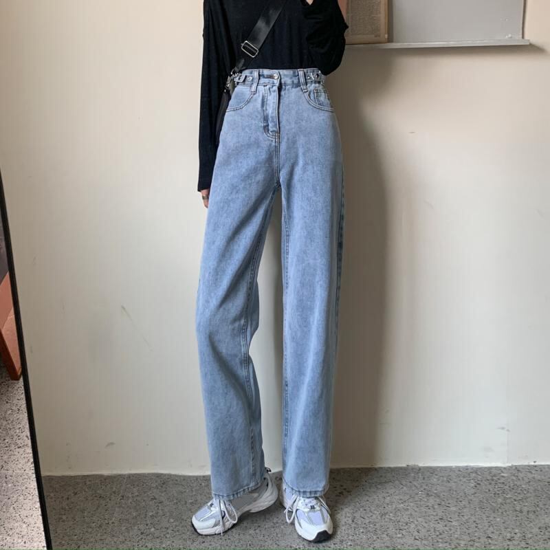 ハイウエストジーンズの女性の2020年初秋バージョンのルーズで薄い小さなワイドレッグストレートドレープモップパンツ クレセントシティ17071626825