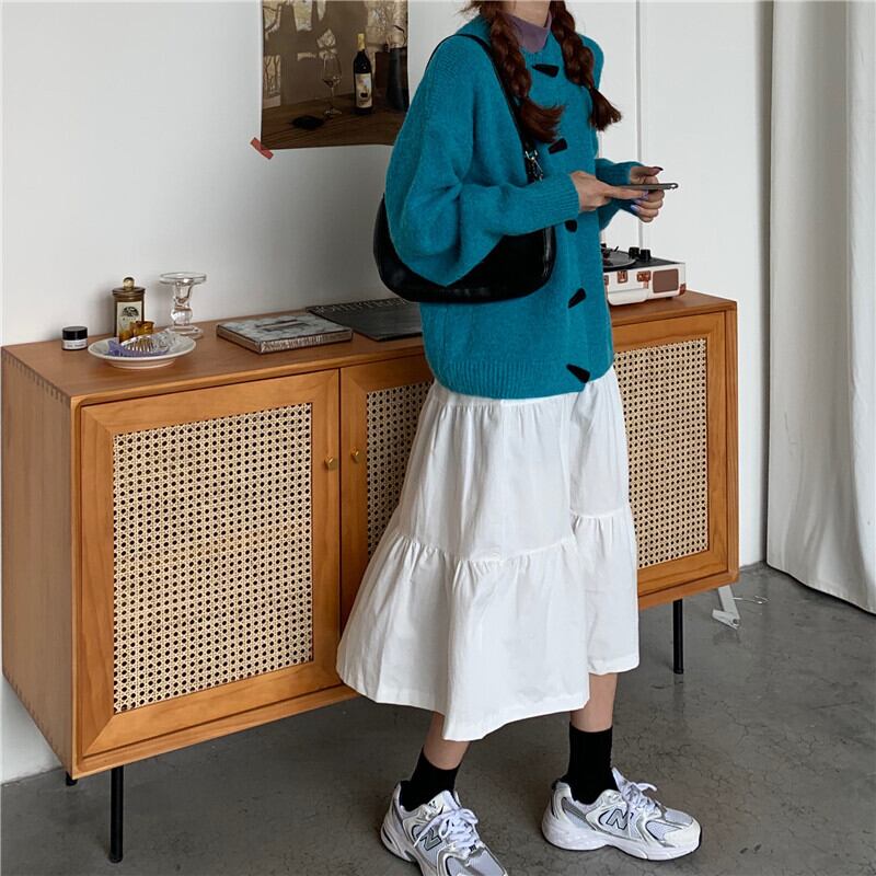 スーツ女性の2020年初秋新作スタイルのホーンバックル厚手のカーディガンジャケット+ハイウエストルーズスカート クレセントシティ44482200586