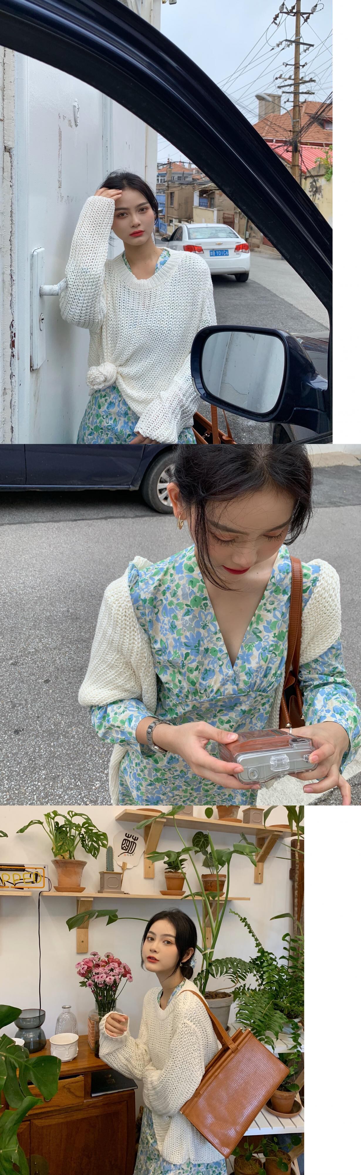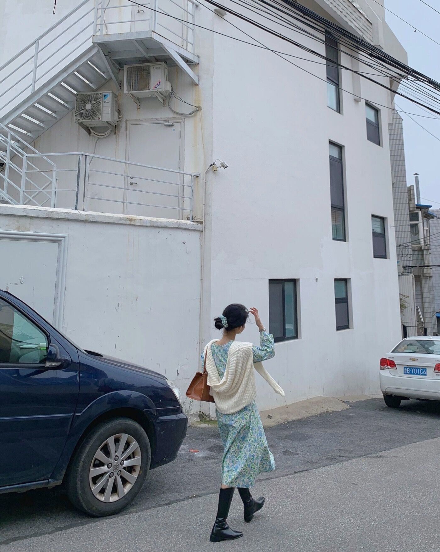 スーツ女性の2020年初秋に小さなVネックフローラルスカートの新バージョン+スタッキングルーズニットセータートレンド クレセントシティ91908055503