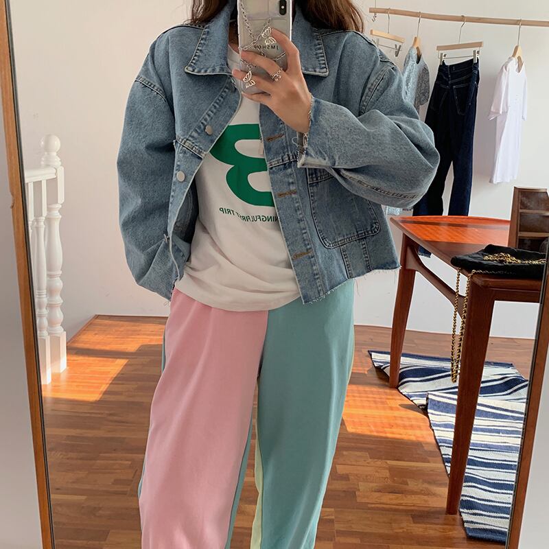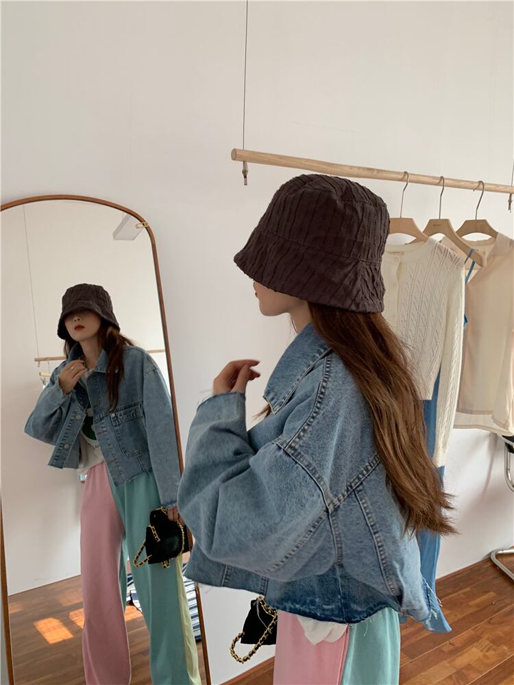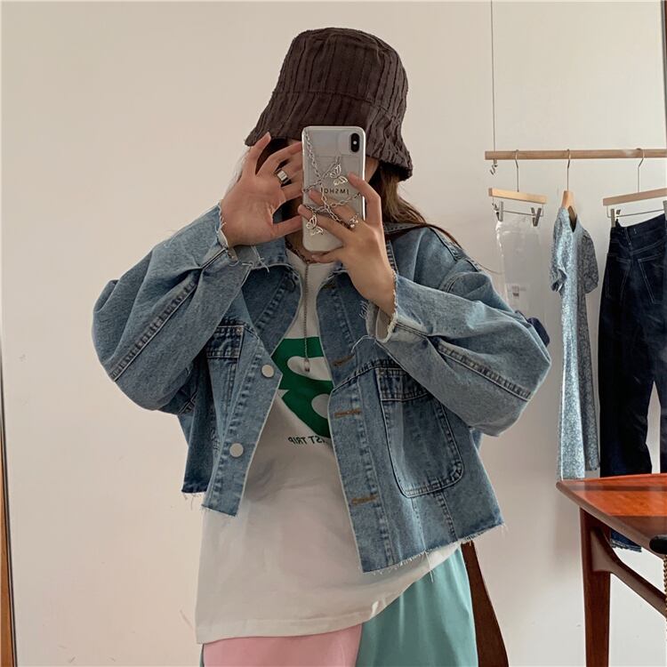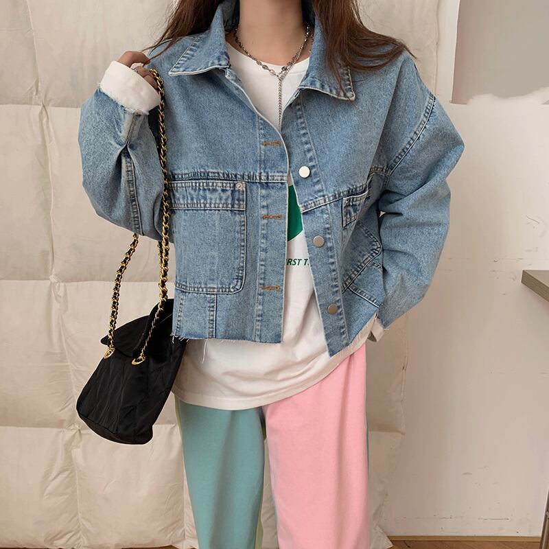 ラペルデニムジャケットレディースビッグポケット2020年秋新バージョンルーズワイルドショートジャケット長袖 クレセントシティ32371427310