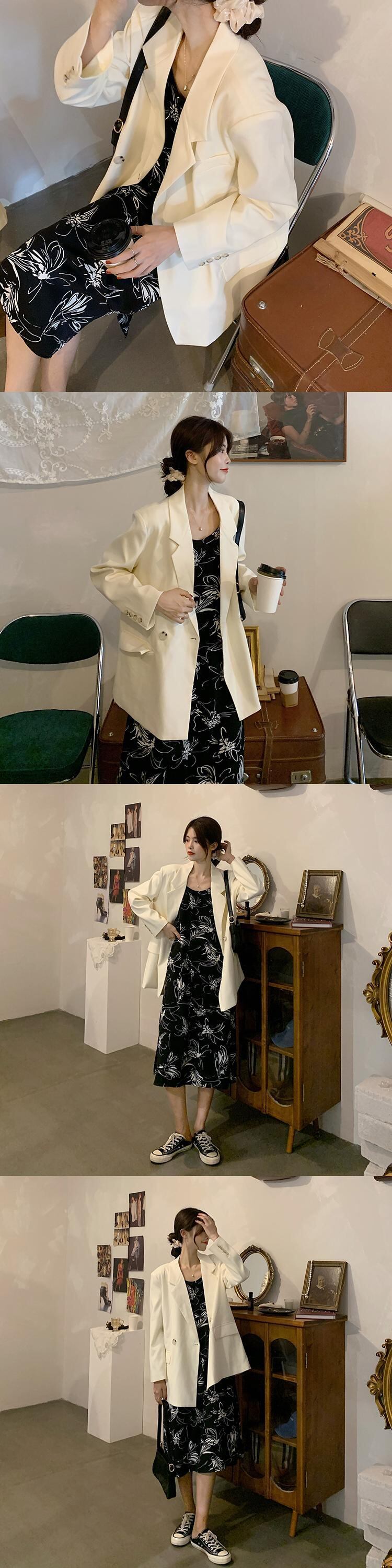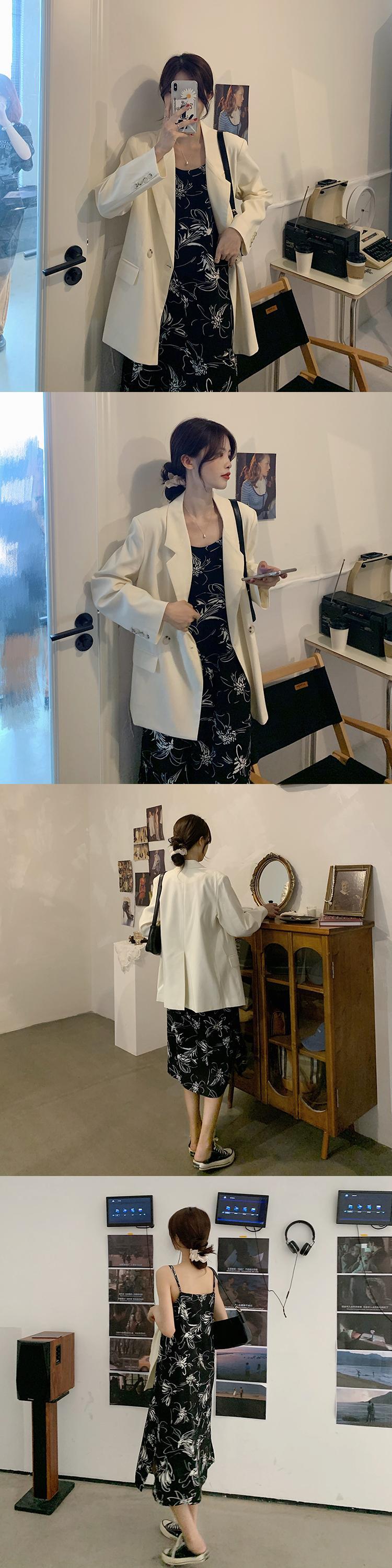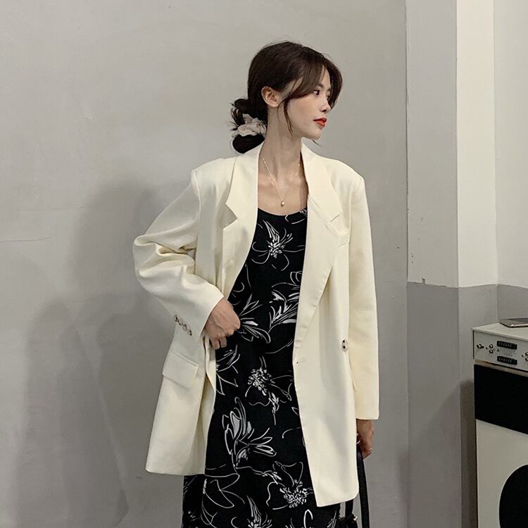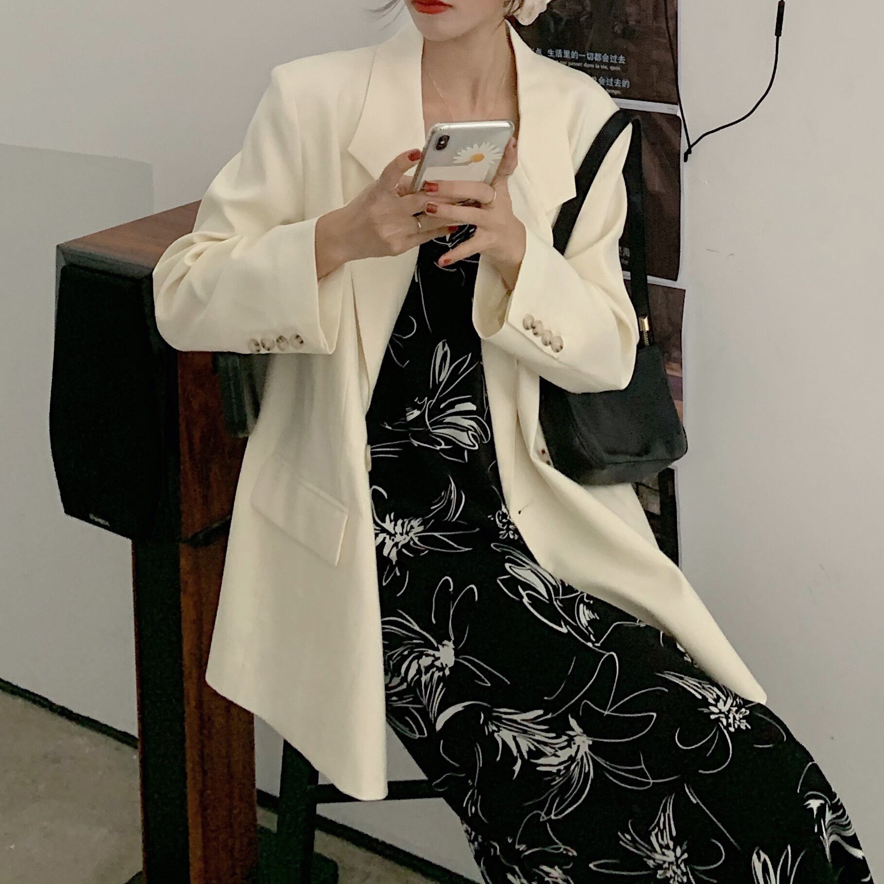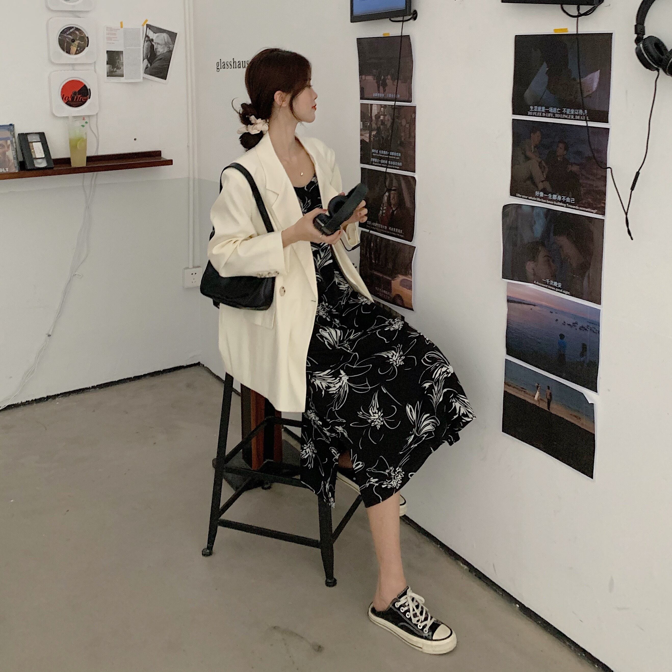 スーツレディース2020年初秋新スタイルスモールルーズスーツジャケット+ハイウエストフローラルサスペンダースカート クレセントシティ10599511779