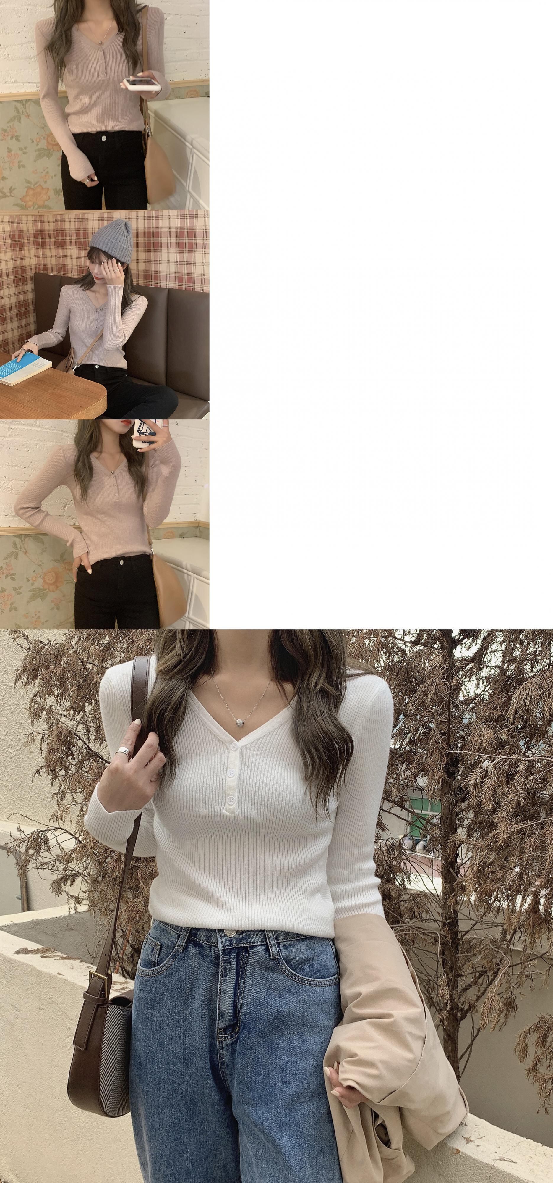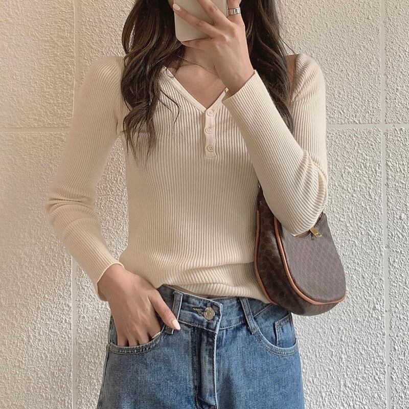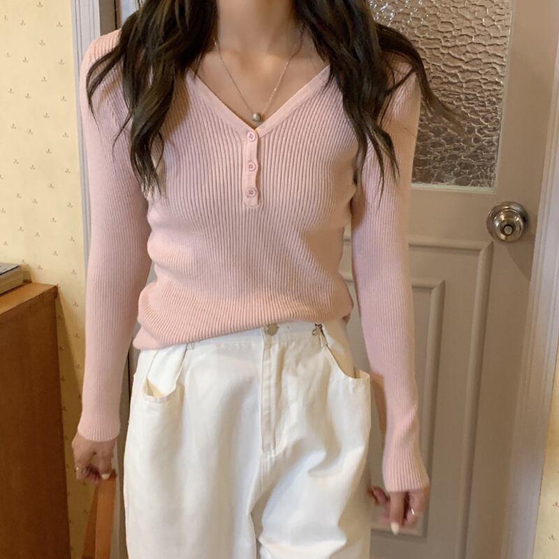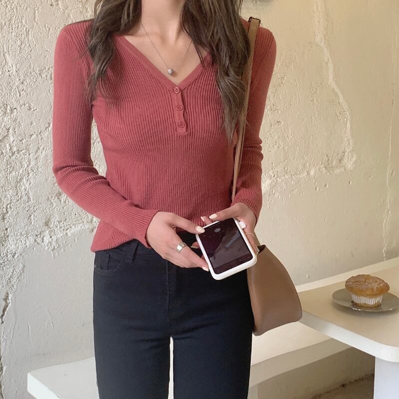 プルオーバーピュアカラーニットセーター薄片2020年初秋レディースVネックブレストスリムスリミングボトミングシャツインの新バージョン クレセントシティ36808888712