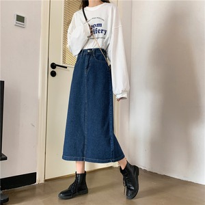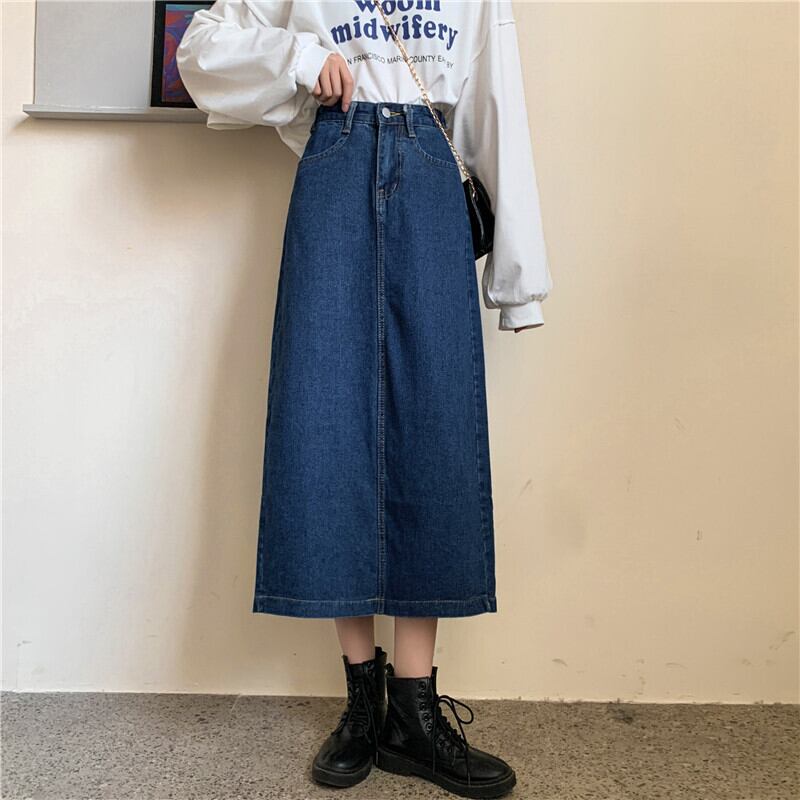 秋のレトロブルーハイウエストデニムスカート女性2020新バージョンルーズで薄いミドル丈Aラインスカートイン クレセントシティ49085011847