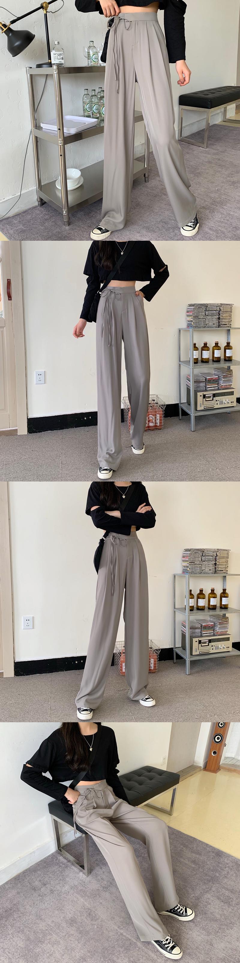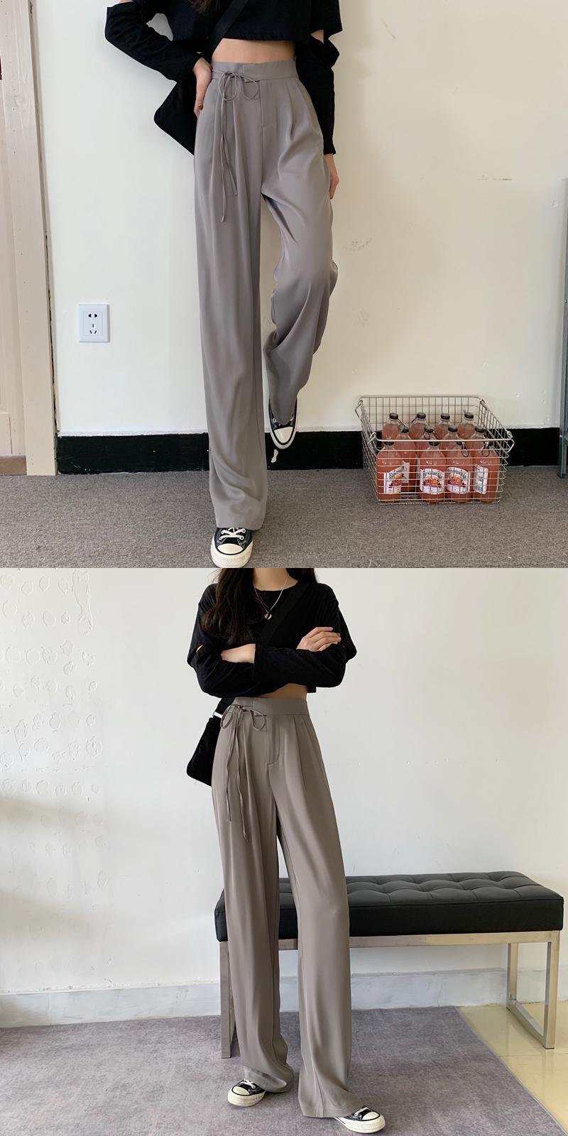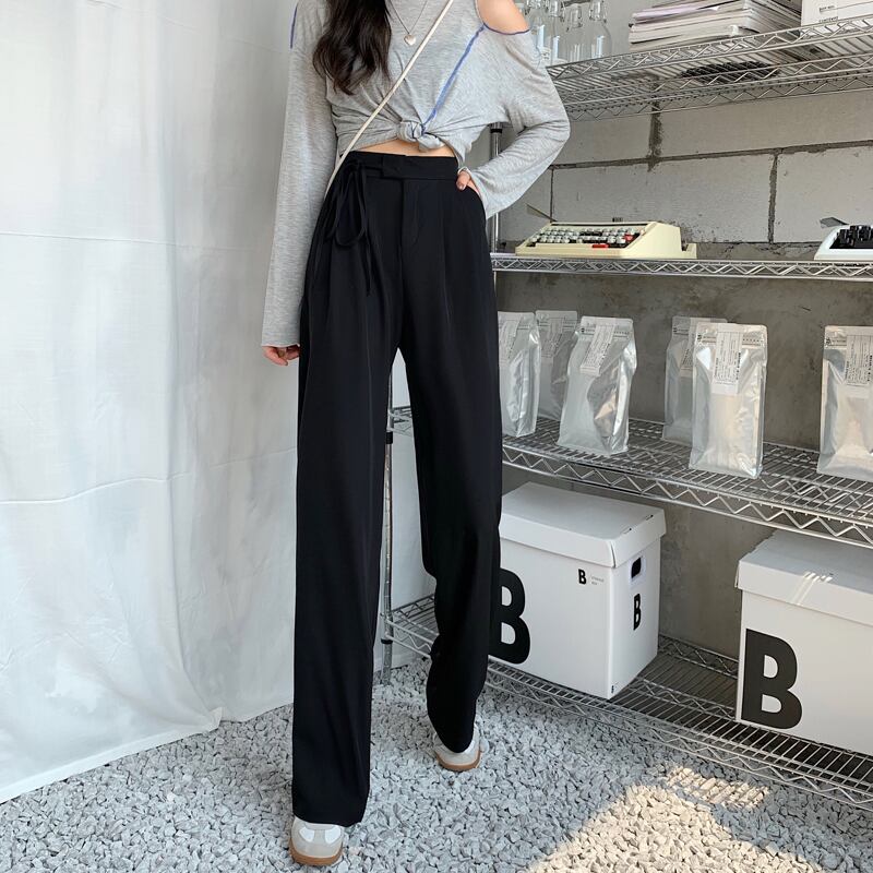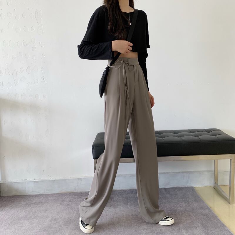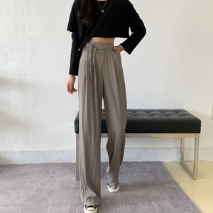 ハイウエストドレープレディースカジュアルパンツ2020年初秋新作スーツパンツストレートルーズで薄いレースアップモッピングパンツ クレセントシティ95241308839