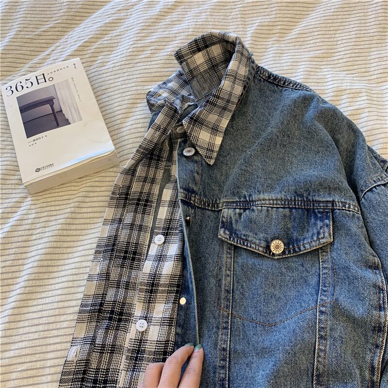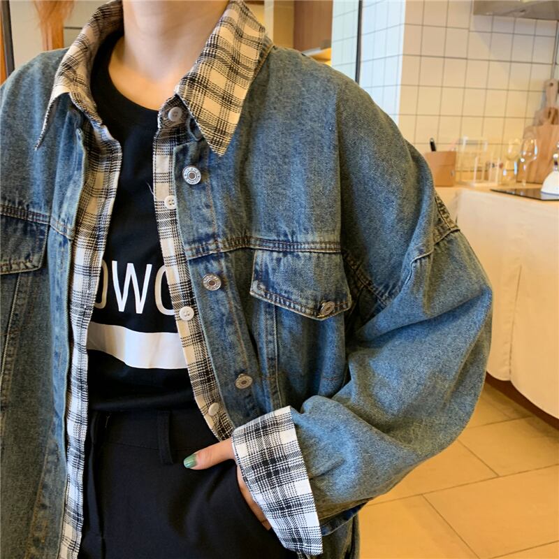 2020年秋新作ツーリングフェイクツーピースジャケットバージョンルーズスチューデントオールマッチデニムジャケット女性イントレンド クレセントシティ5676542346