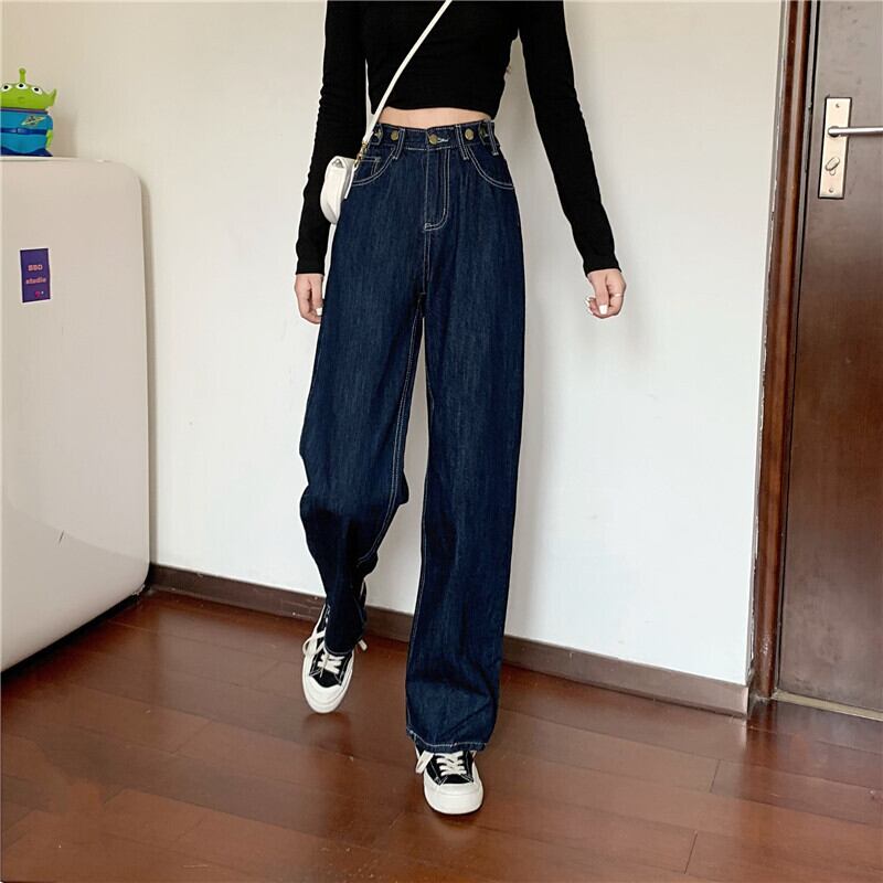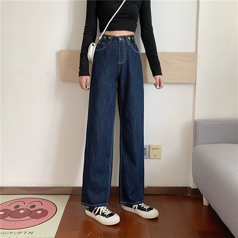 レトロジーンズレディース2020年秋新作パンツハイウエストスリムワイドレッグパンツルーズストレートモップパンツパンツ クレセントシティ49706931092
