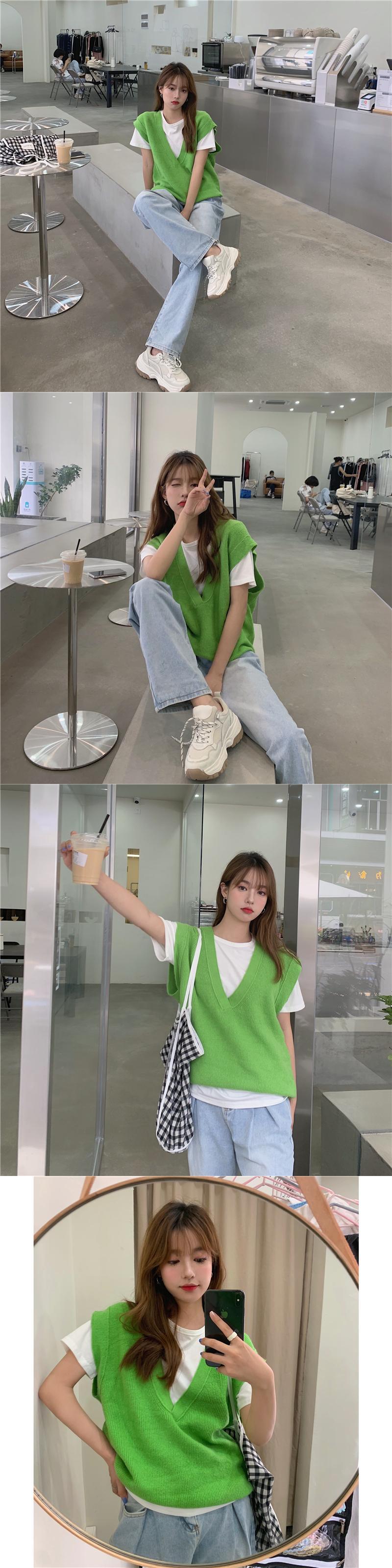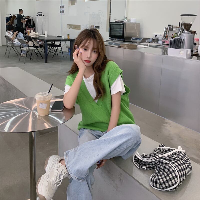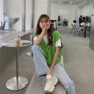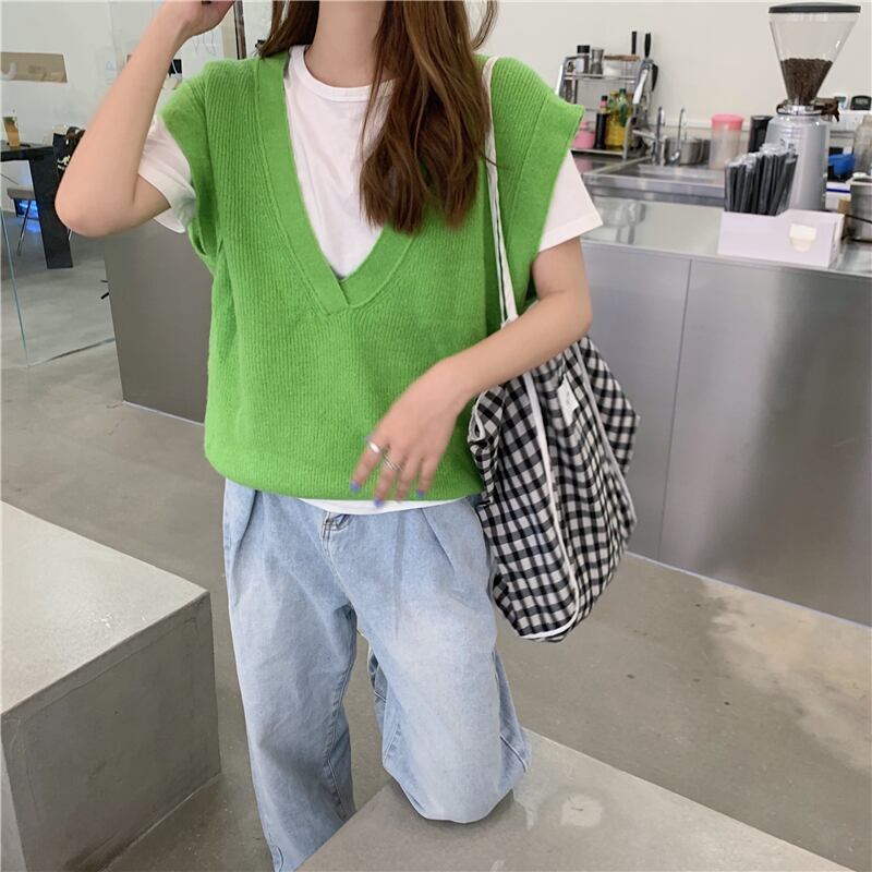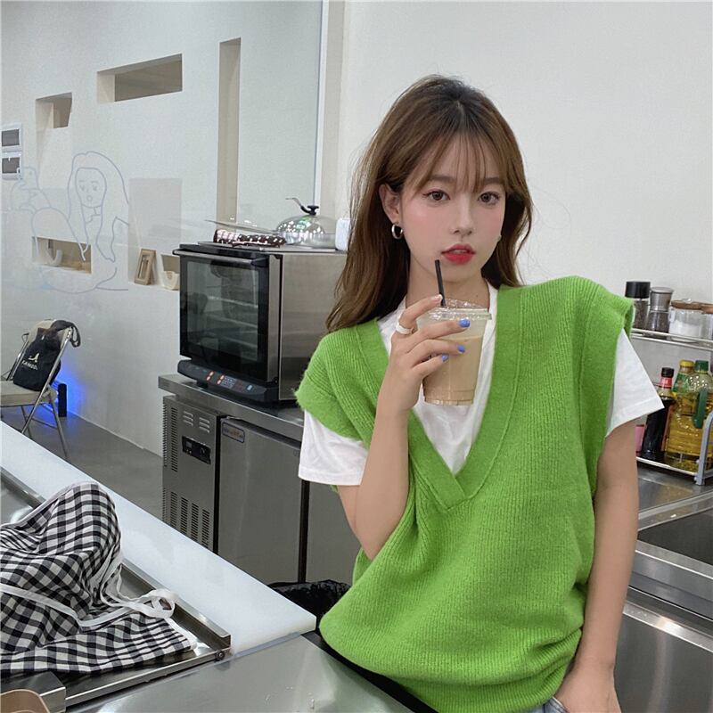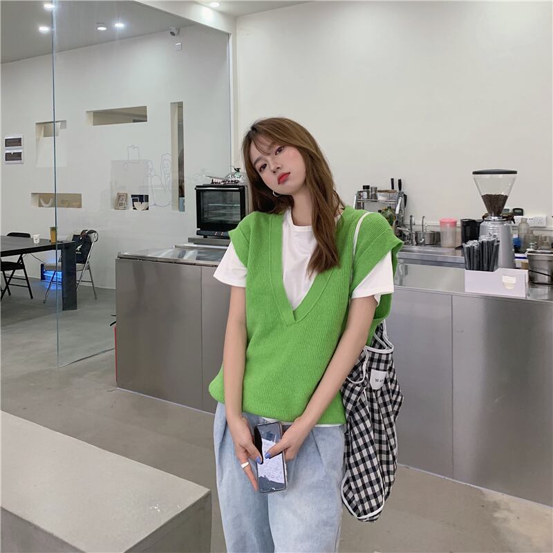 グリーンヘッジベスト女性の2020年初秋新しいスタックウェアルーズカジュアルVネックアウターニットベストイン クレセントシティ8095351775