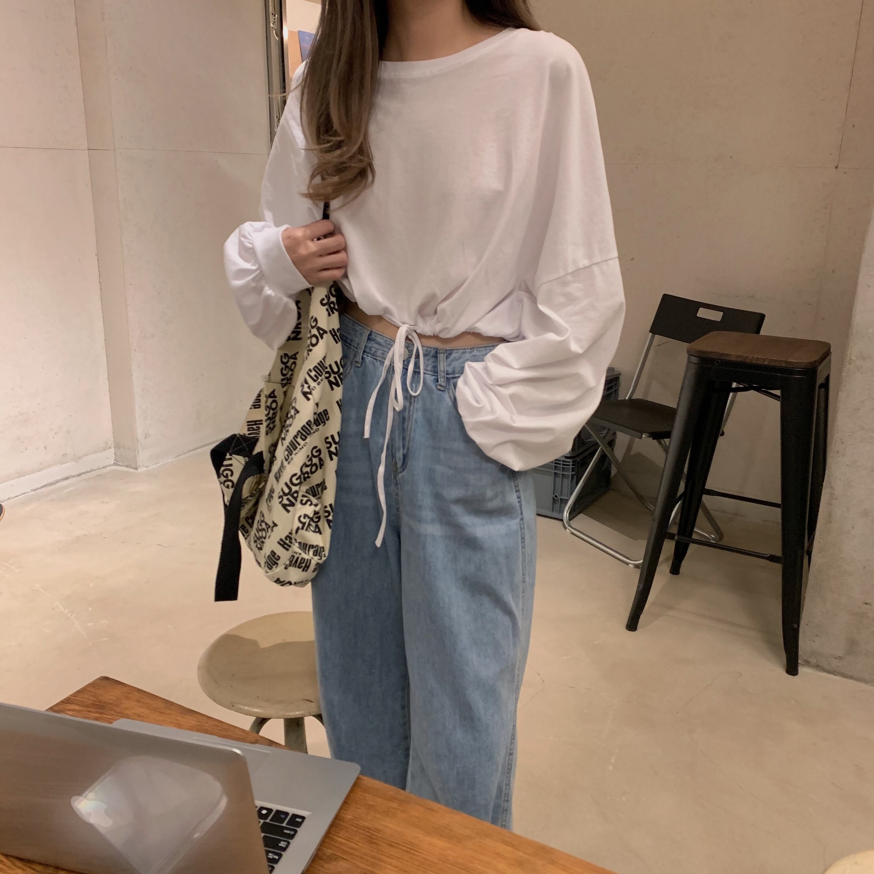 2020年秋新バージョンのルーズ長袖Tシャツ女子学生ワイルドデザインセンスショートクロップトップイントレンド クレセントシティ90201358815