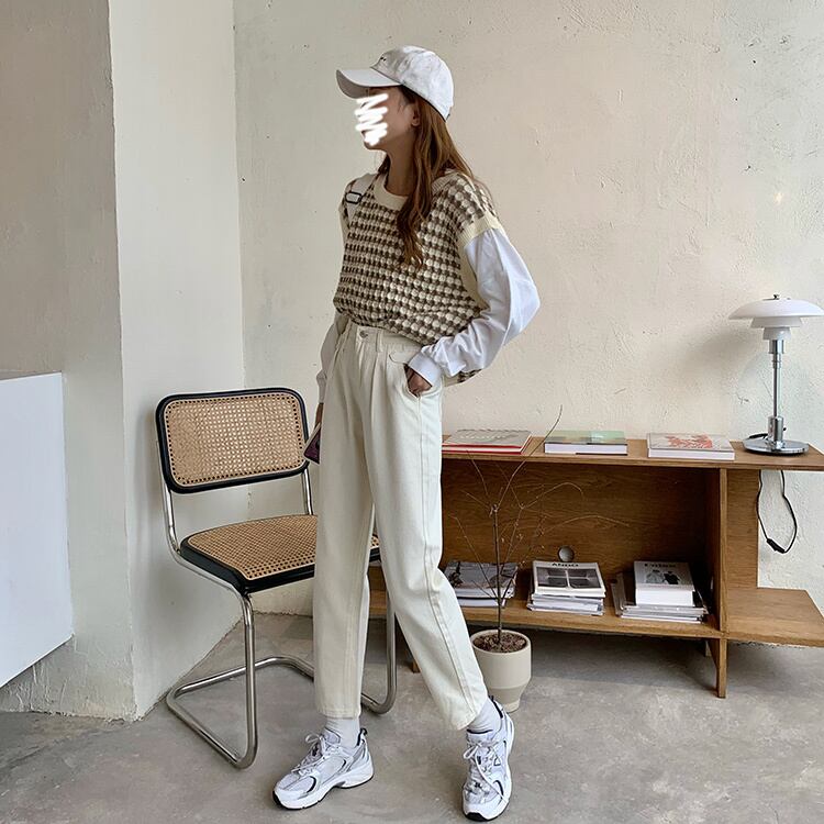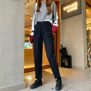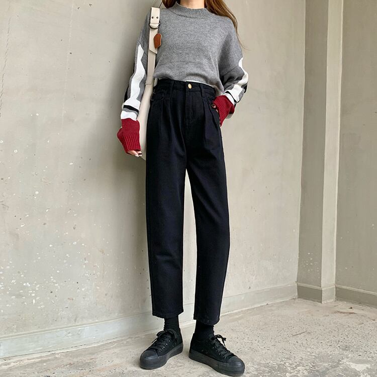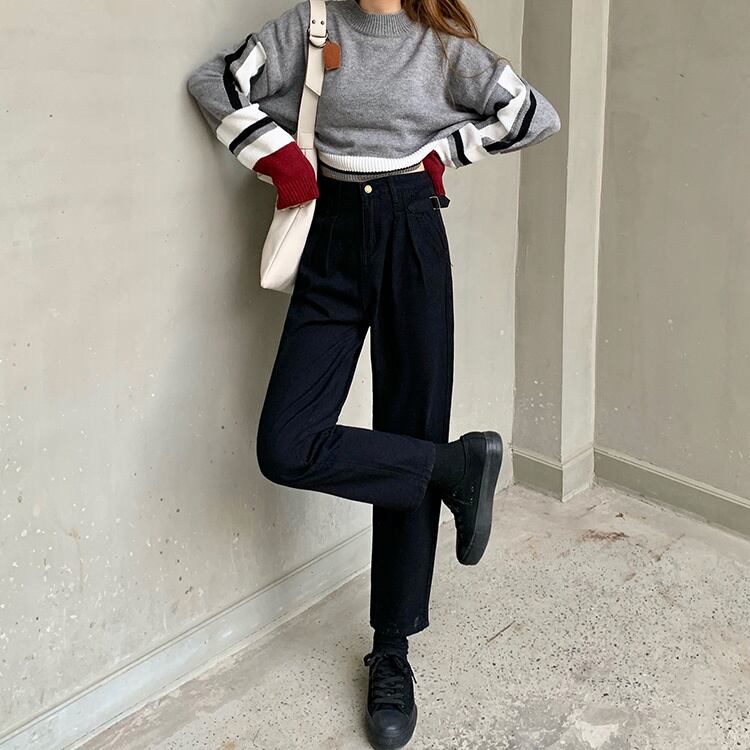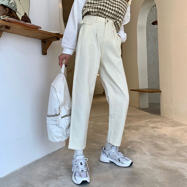 -ウエストジーンズ女性秋小人2020新入生ルーズ&シンデザイン折り目ストレートレッグパンツ クレセントシティ18904237910