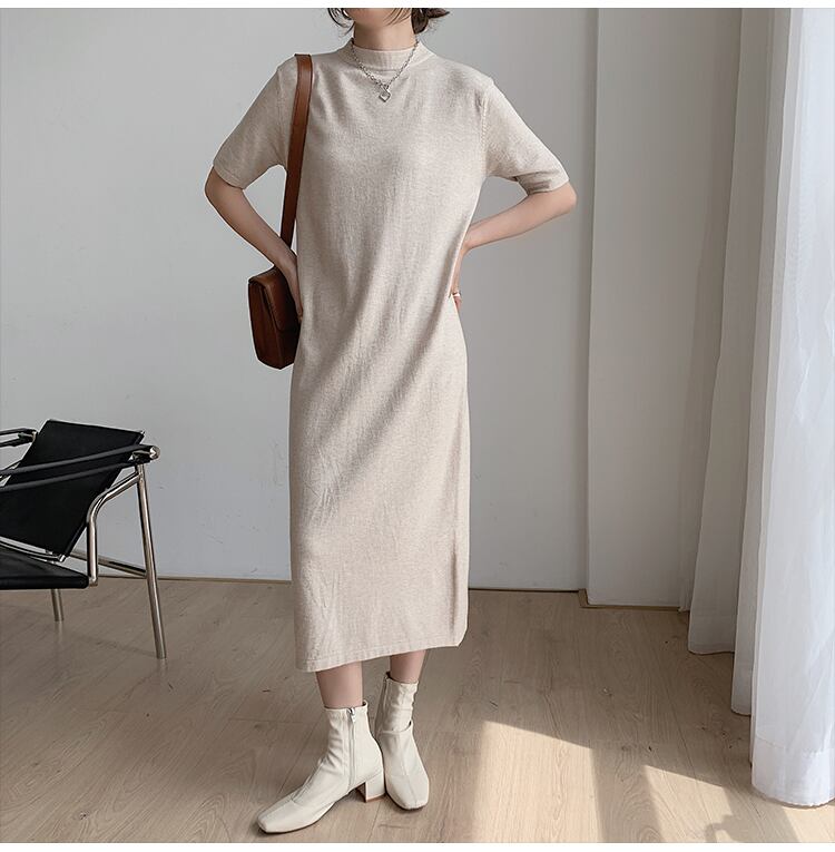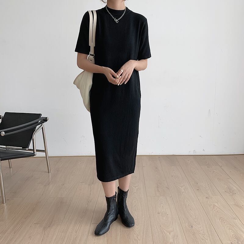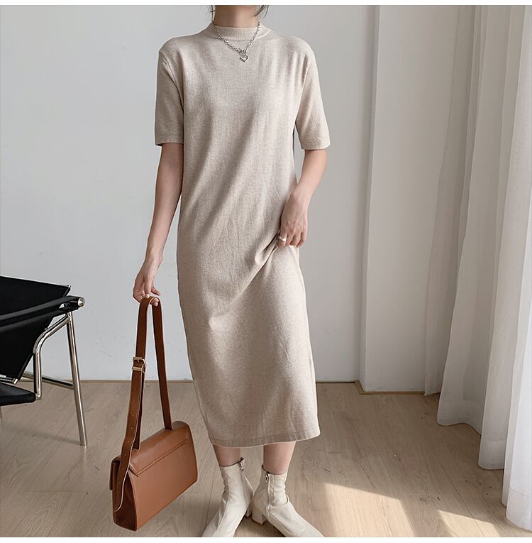ハーフハイネックニットドレスの女性が秋冬に着用する2020年新バージョンの薄い気質の膝丈ロングベーススカート クレセントシティ96456518504