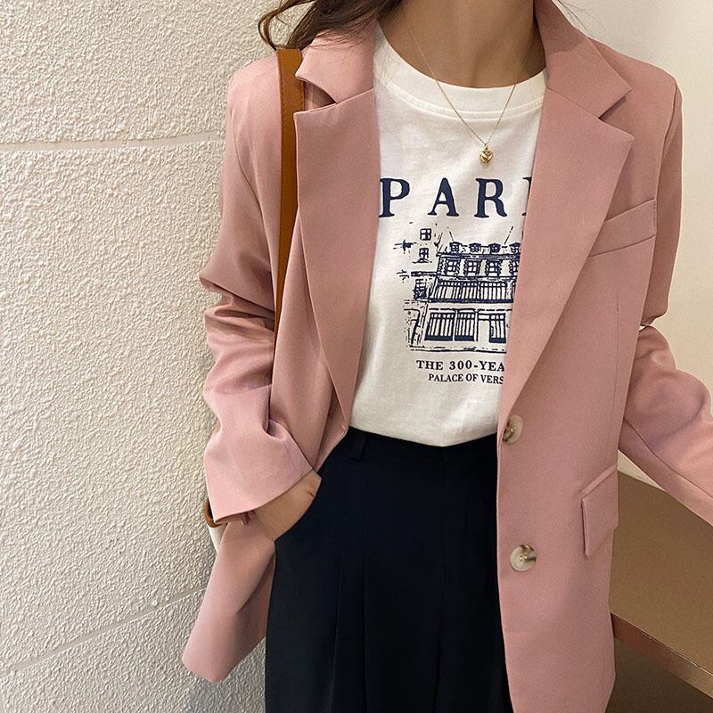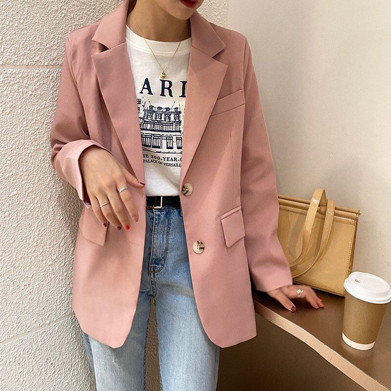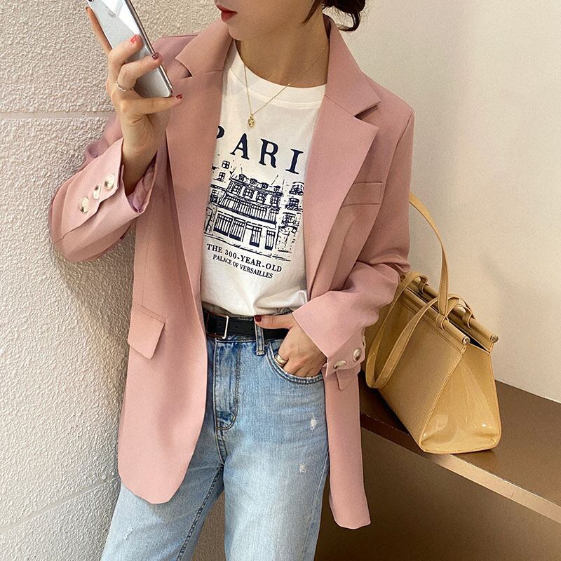ピンクのスーツジャケットの女性2020年秋英国スタイルのルーズカジュアルオールマッチスモールスーツジャケットの新バージョン クレセントシティ34972690781