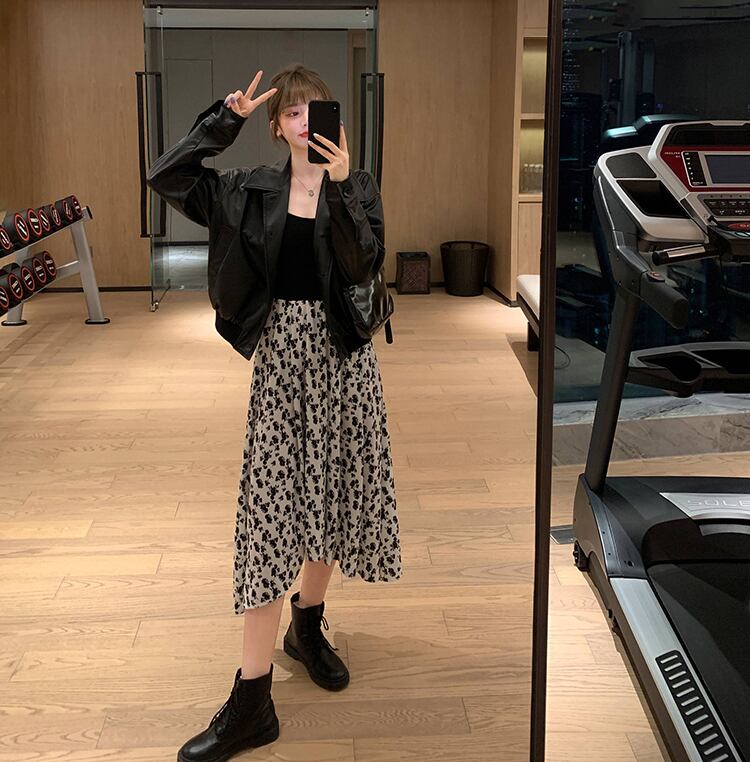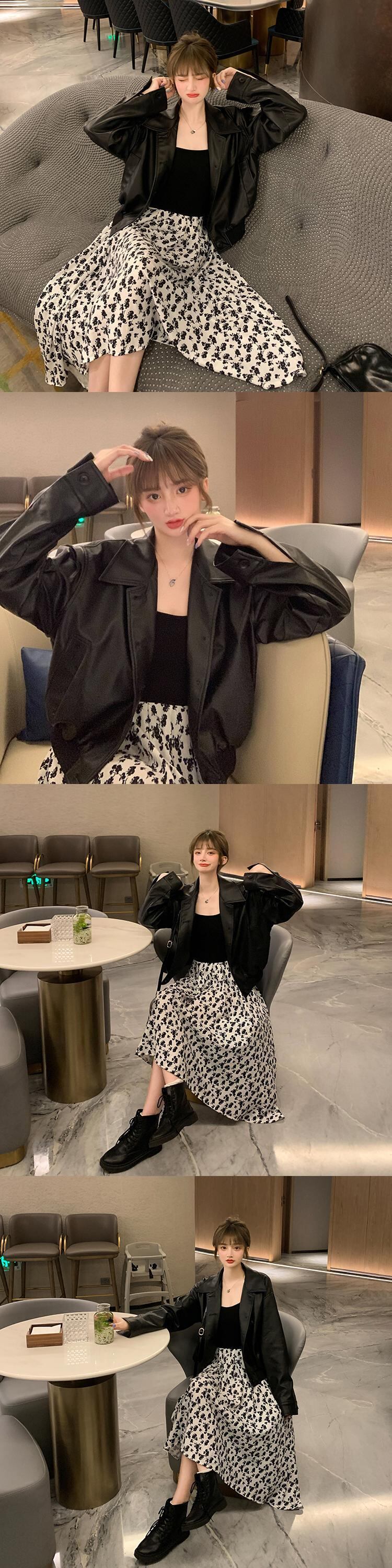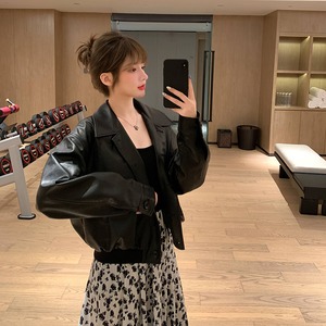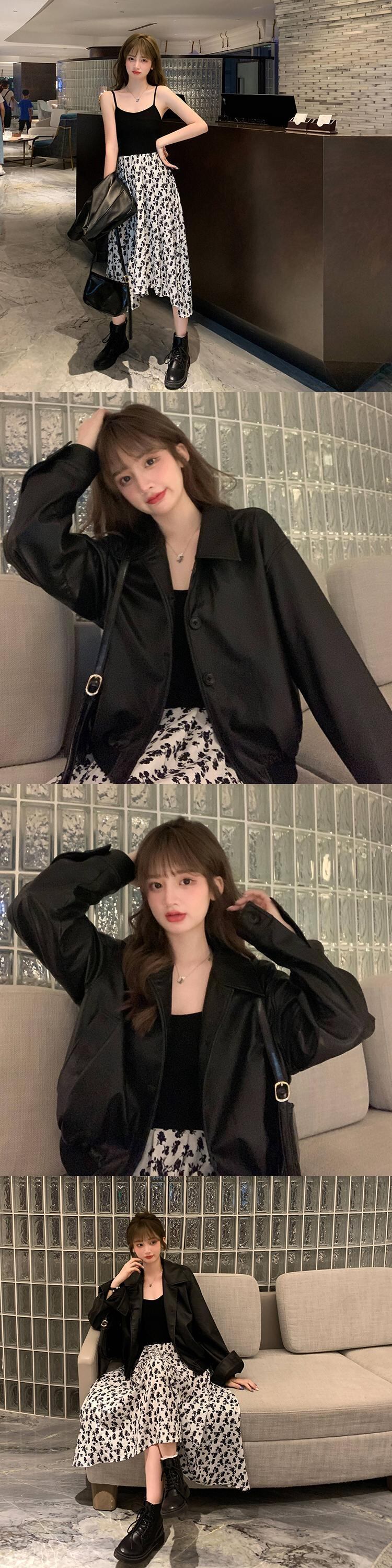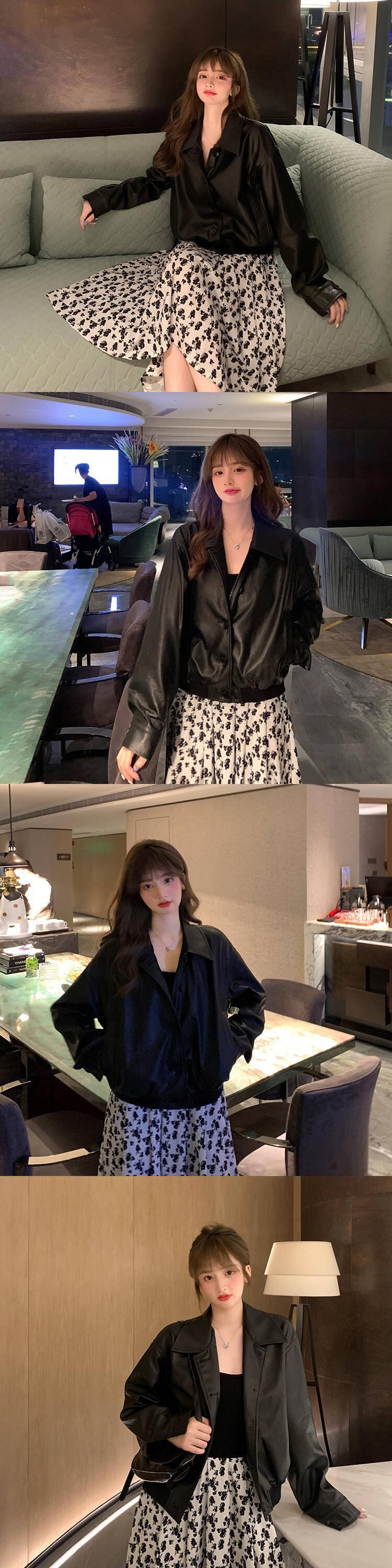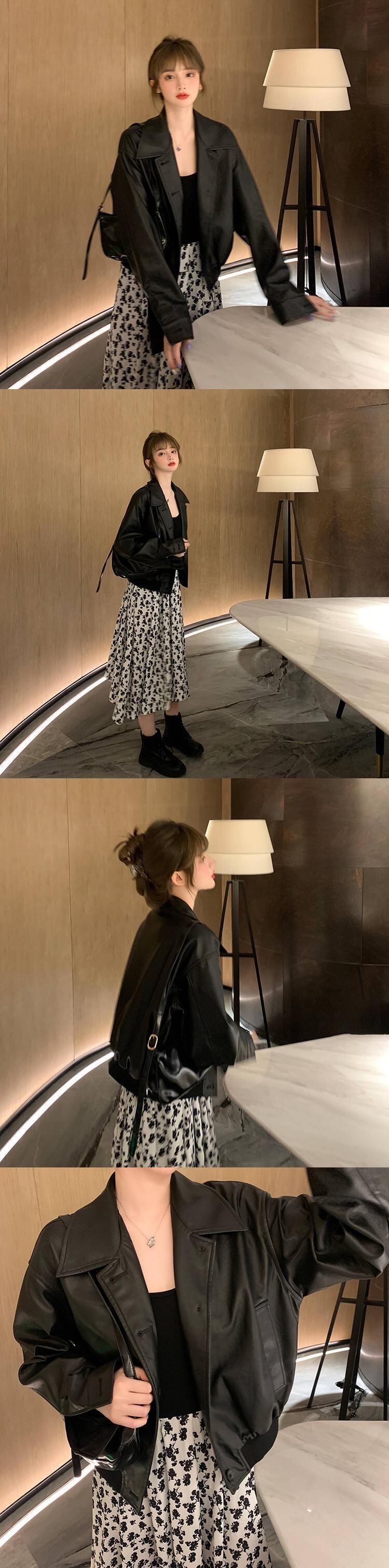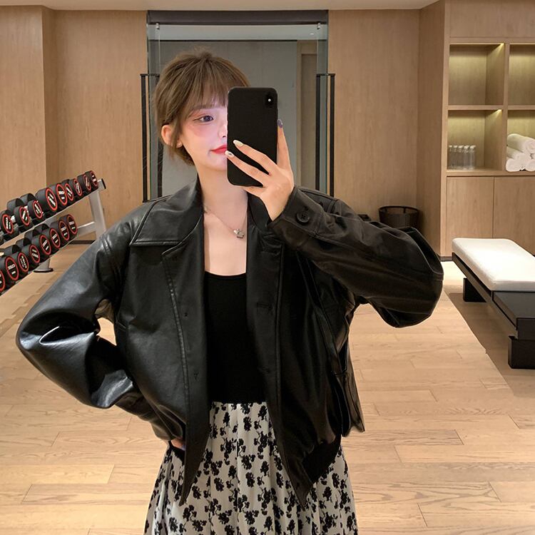 スーツレディース秋の服2020ニュースタイルルーズショートレザージャケット+ステッチドレスツーピーススーツ クレセントシティ38053941731