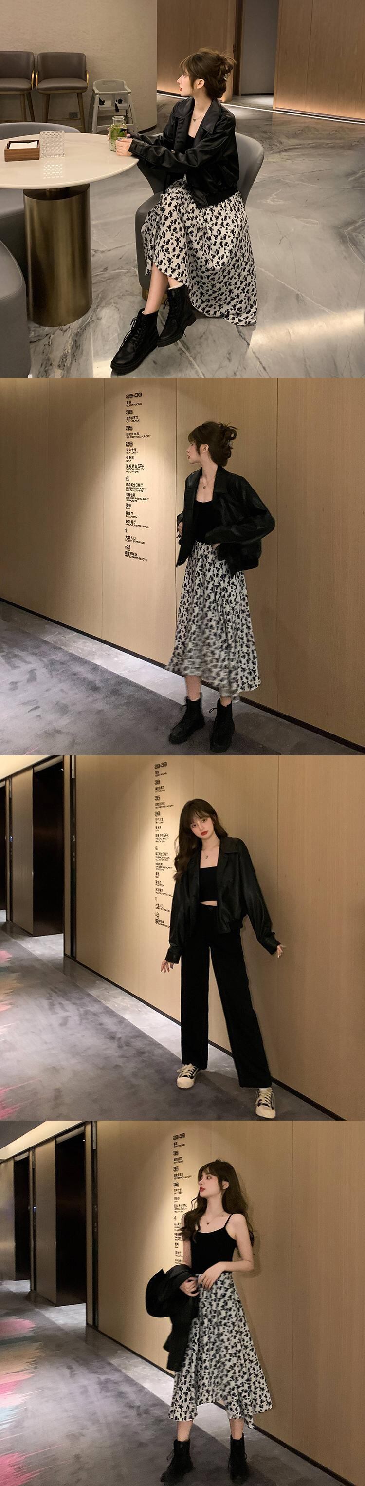色:レザージャケット,スリングドレス